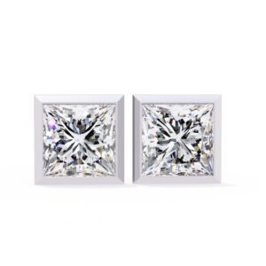 0.5 Carat Princess Moissanite Stud Earring , Bezel Earring