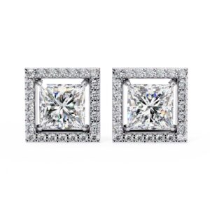 0.5 Carat Princess Cut Halo Earring , Classic Diamond Earring For Women