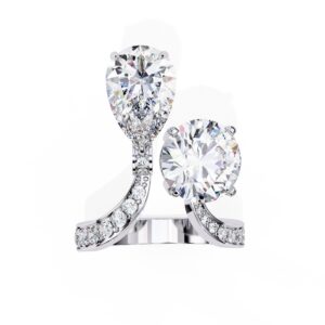 Regina – Toi et Moi Round and Pear Lab Grown Diamond Bypass Engagement Ring with Pave Band