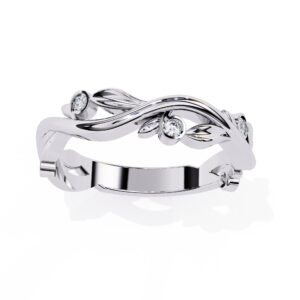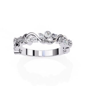Round Floral Leaf Design Lab Grown Diamond Stackable Band