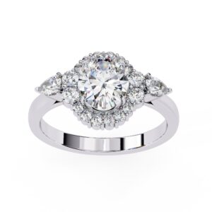 0.5 Carat Oval and Pear Halo 3-Stone Lab Grown Diamond Engagement Ring