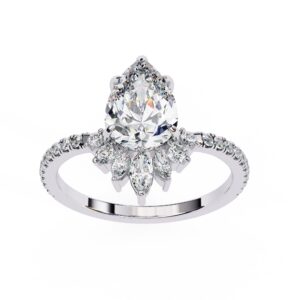 0.5 Carat Pear Vintage Style With Pave Engagement Ring / Marquise Side Stone Ring