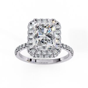 0.5 Carat Radiant & Round Moissanite Halo Anniversary Gift Ring