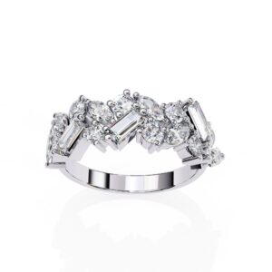 Cluster Baguette Marquise Round Cut Diamond Ring / Half Eternity Band