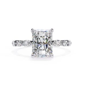 0.5 Carat Elegant Emerald-Cut Lab-Grown Diamond Engagement Ring with Marquise and Round Accents