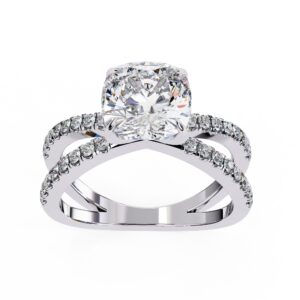 0.5 Carat Cushion Square Double Claw Prong With Pave Band Engagement Ring