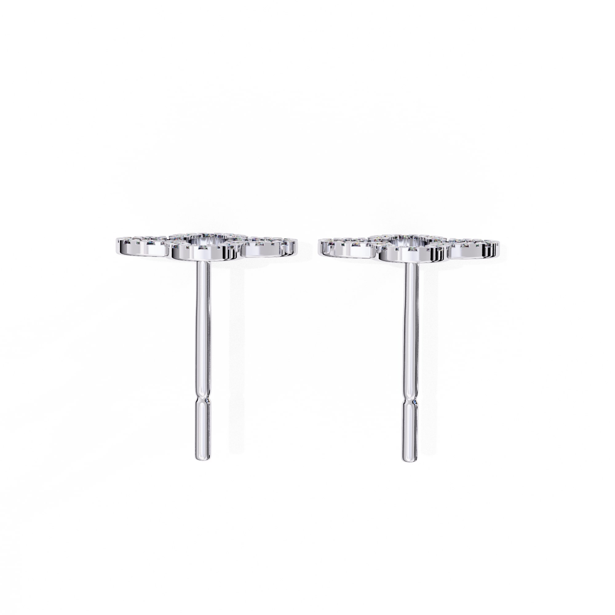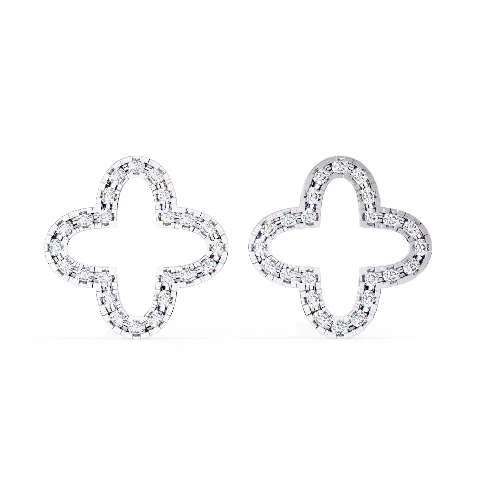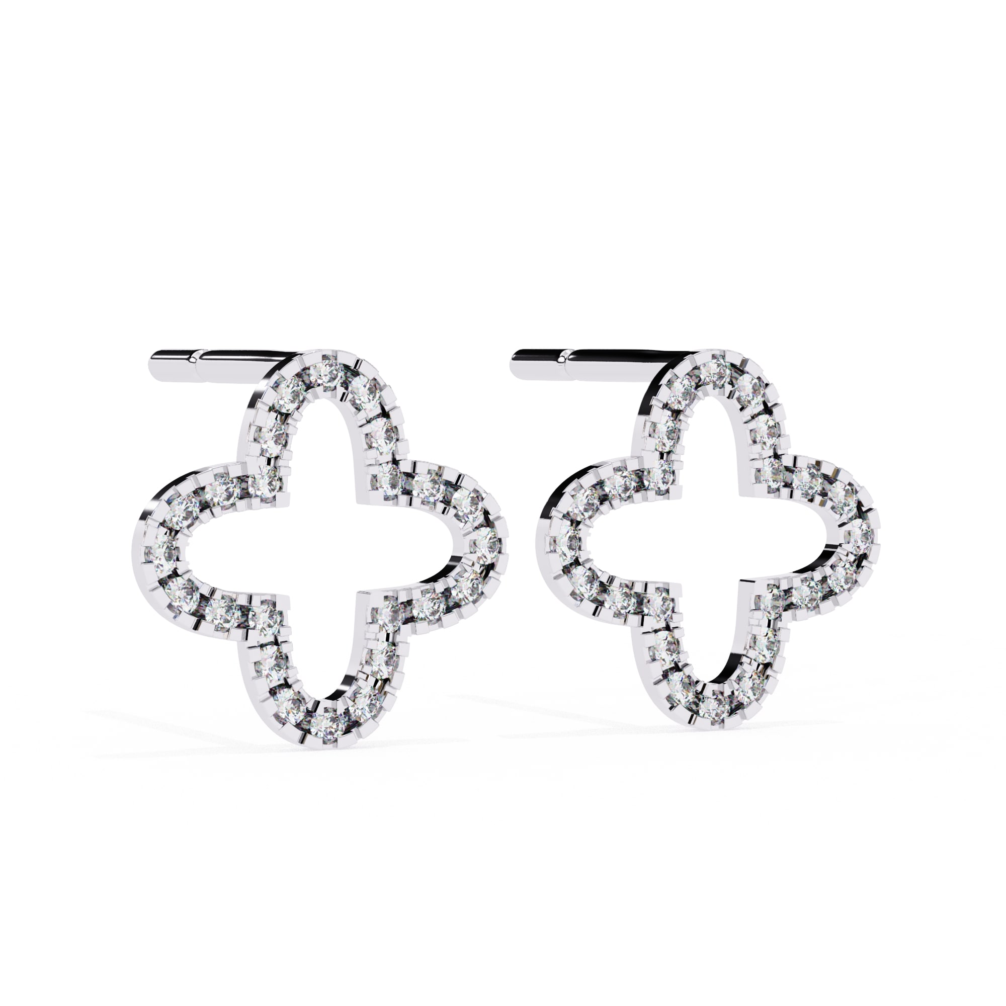 Timeless Clover Natural Diamond Stud , Star Pave Earring , Anniversary Gift