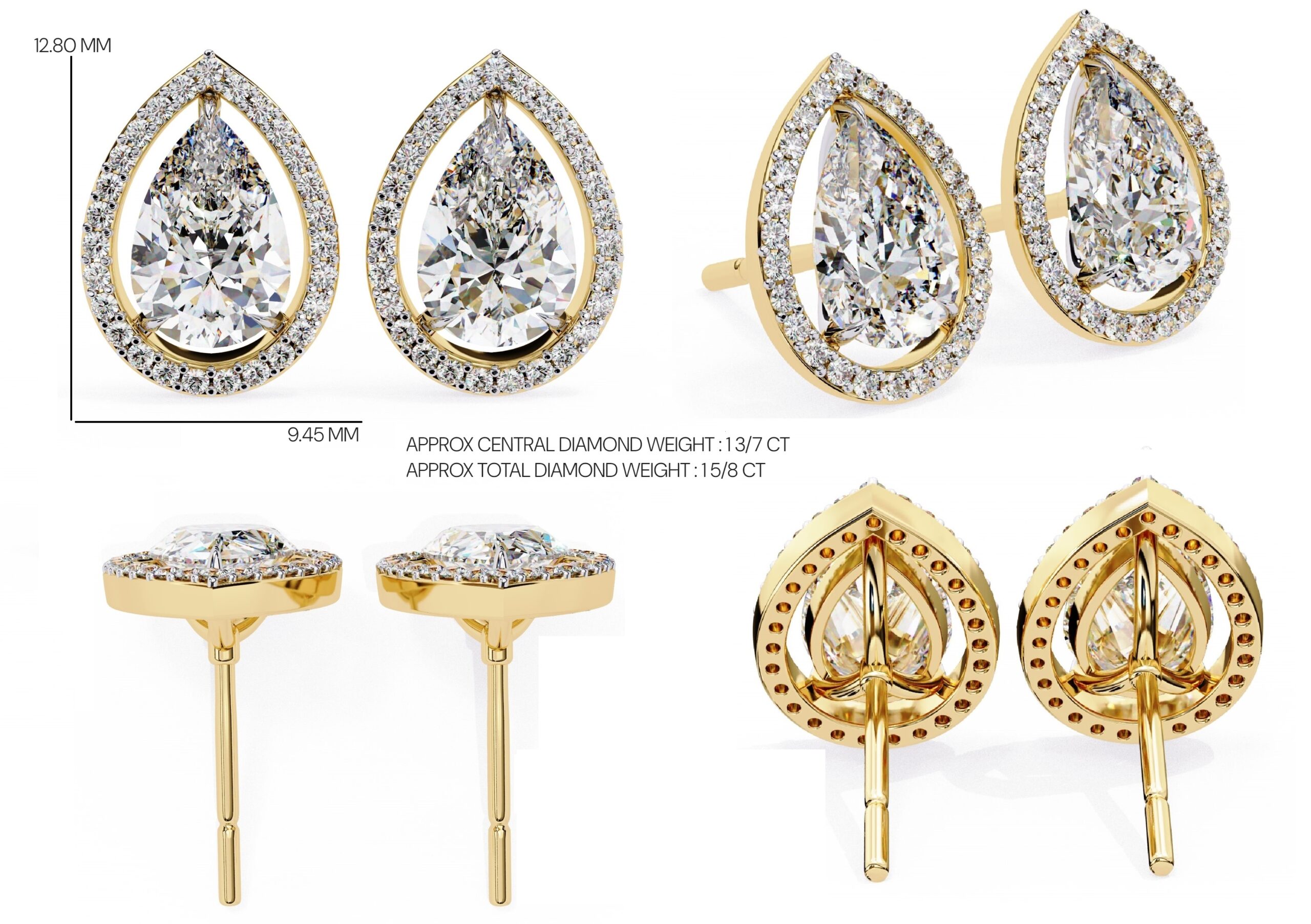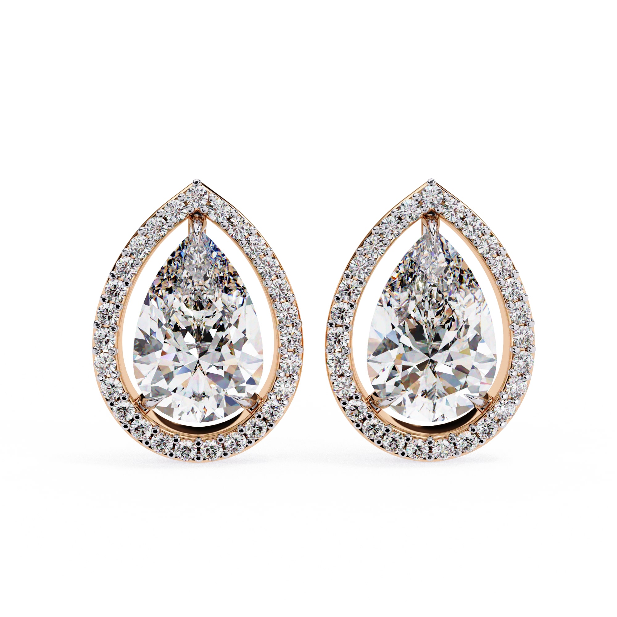 0.5 Carat Pear Cut Diamond Halo Earring , Drop Shape Stud Earring