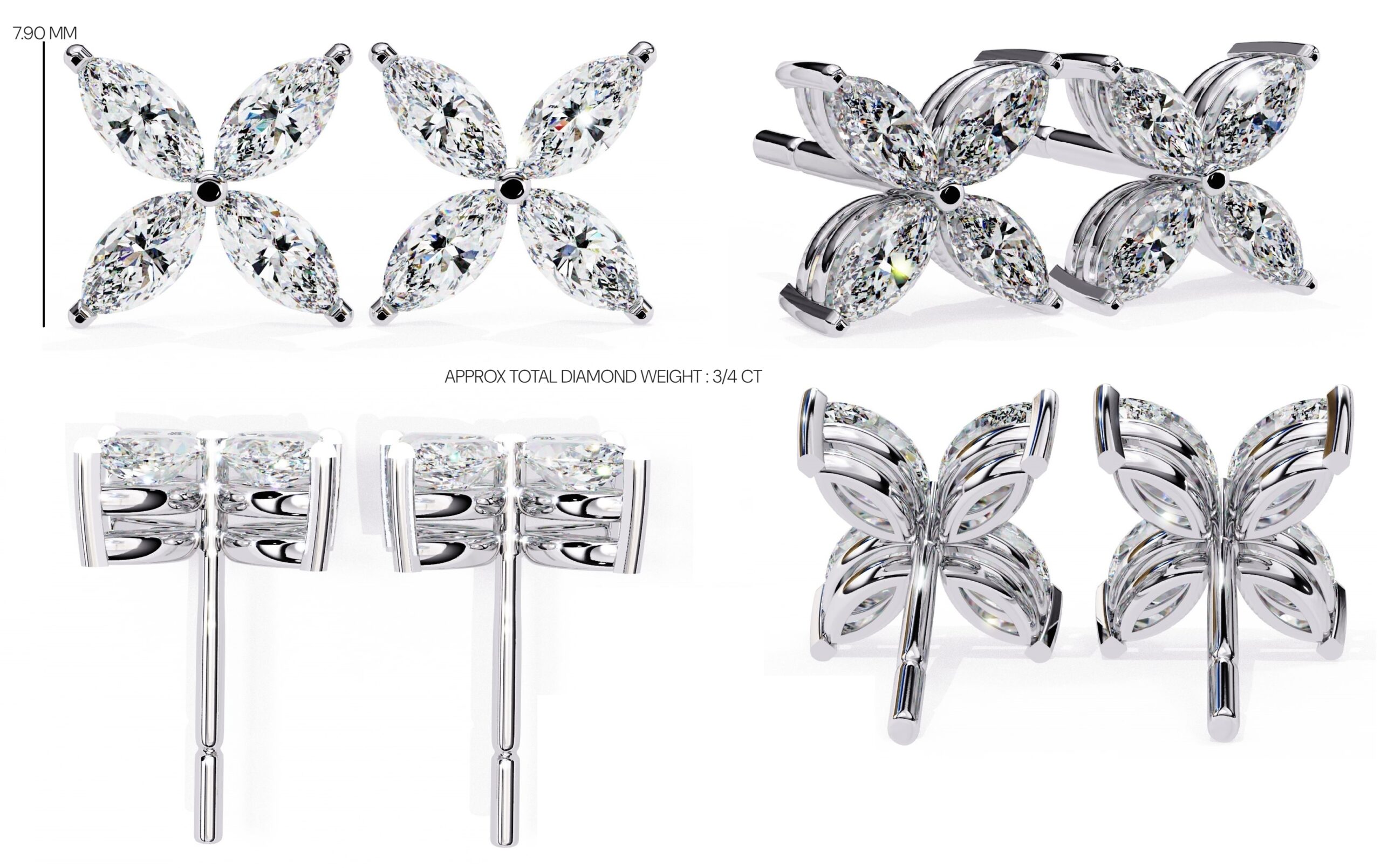 Orion Diamond Earring , Four Stone Marquise Earring , Anniversary Gift