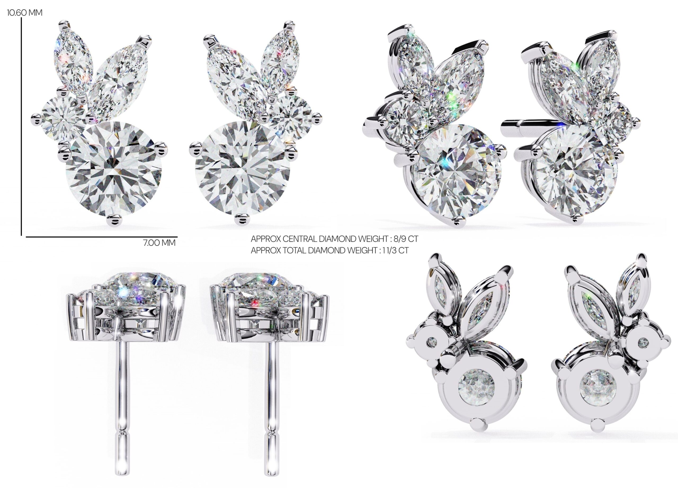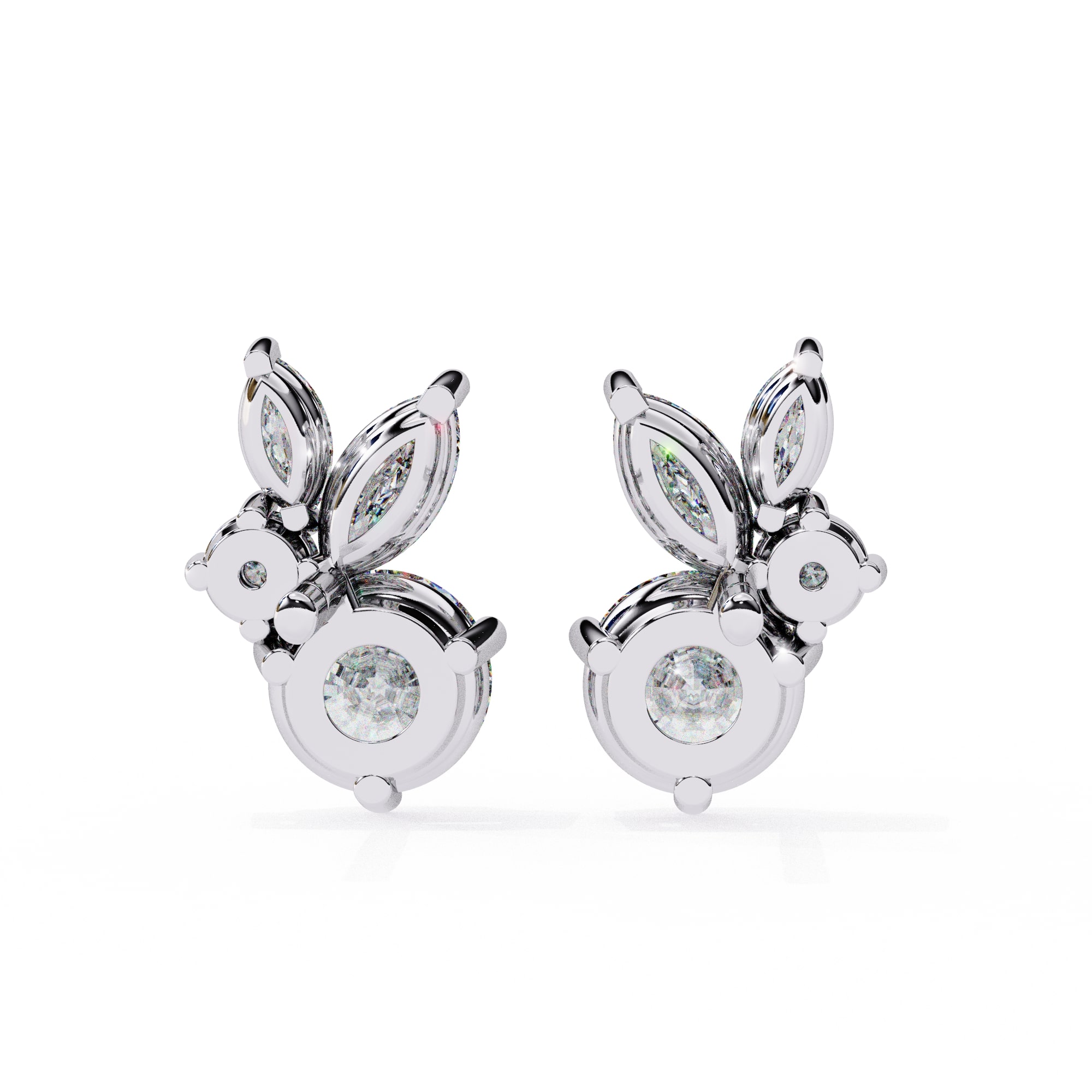 0.5 Carat Round Diamond Earring , Two Marquise Diamond Stud Earring