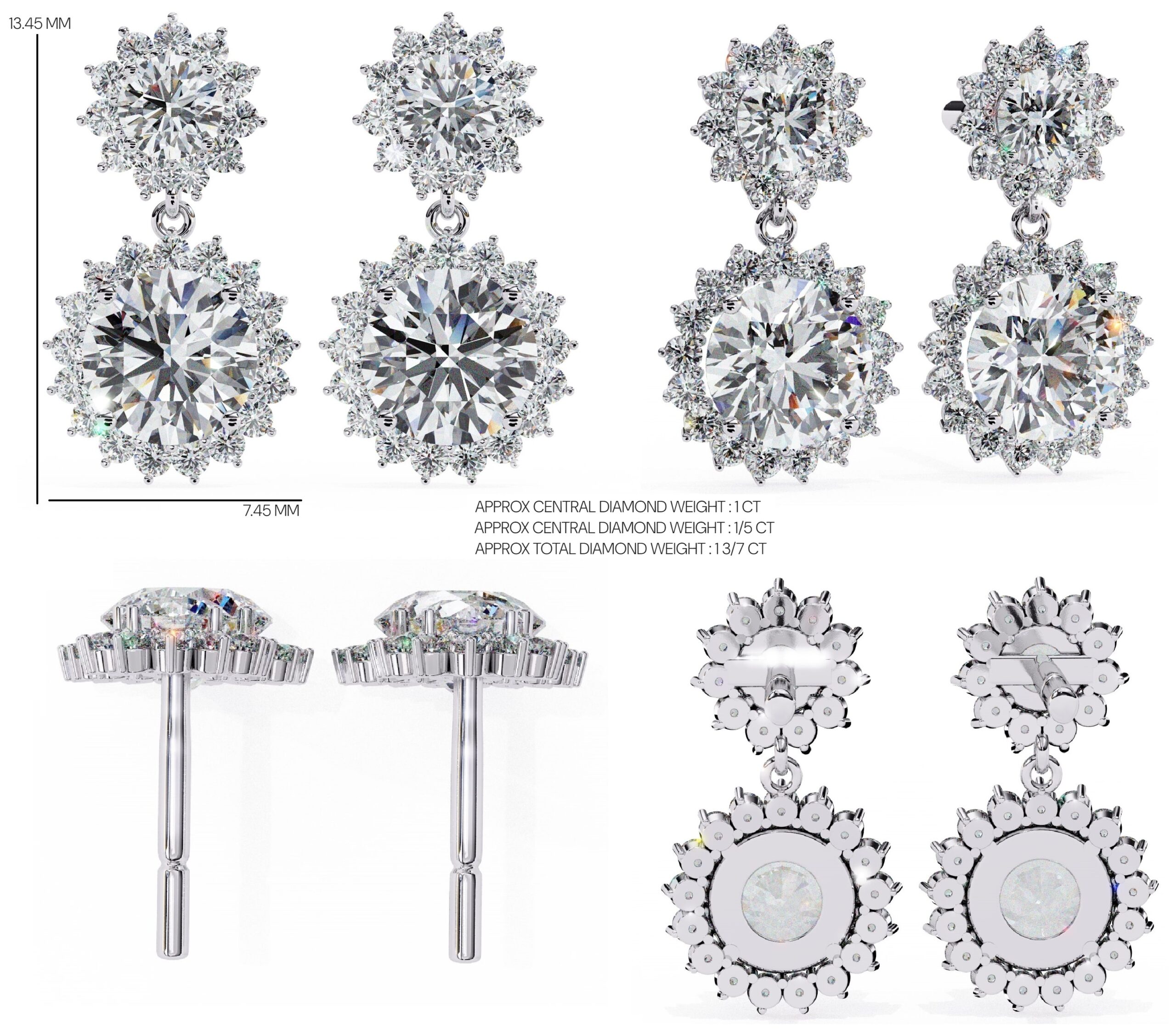 0.5 Carat Dangle Stud Round Diamond Earring , Bride Wedding Jewelry