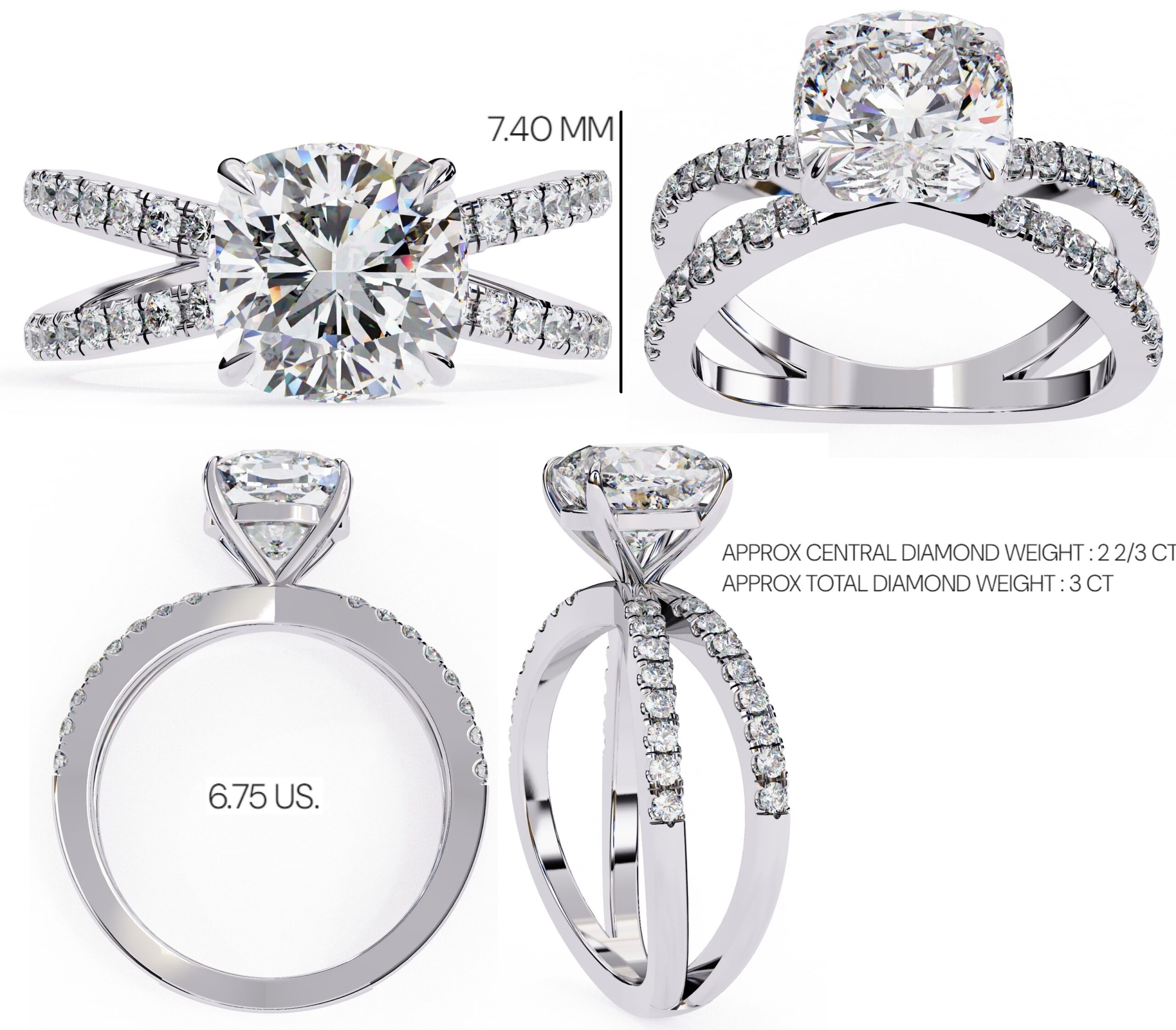 0.5 Carat Cushion Square Hidden Halo with Split Shank Engagement Ring