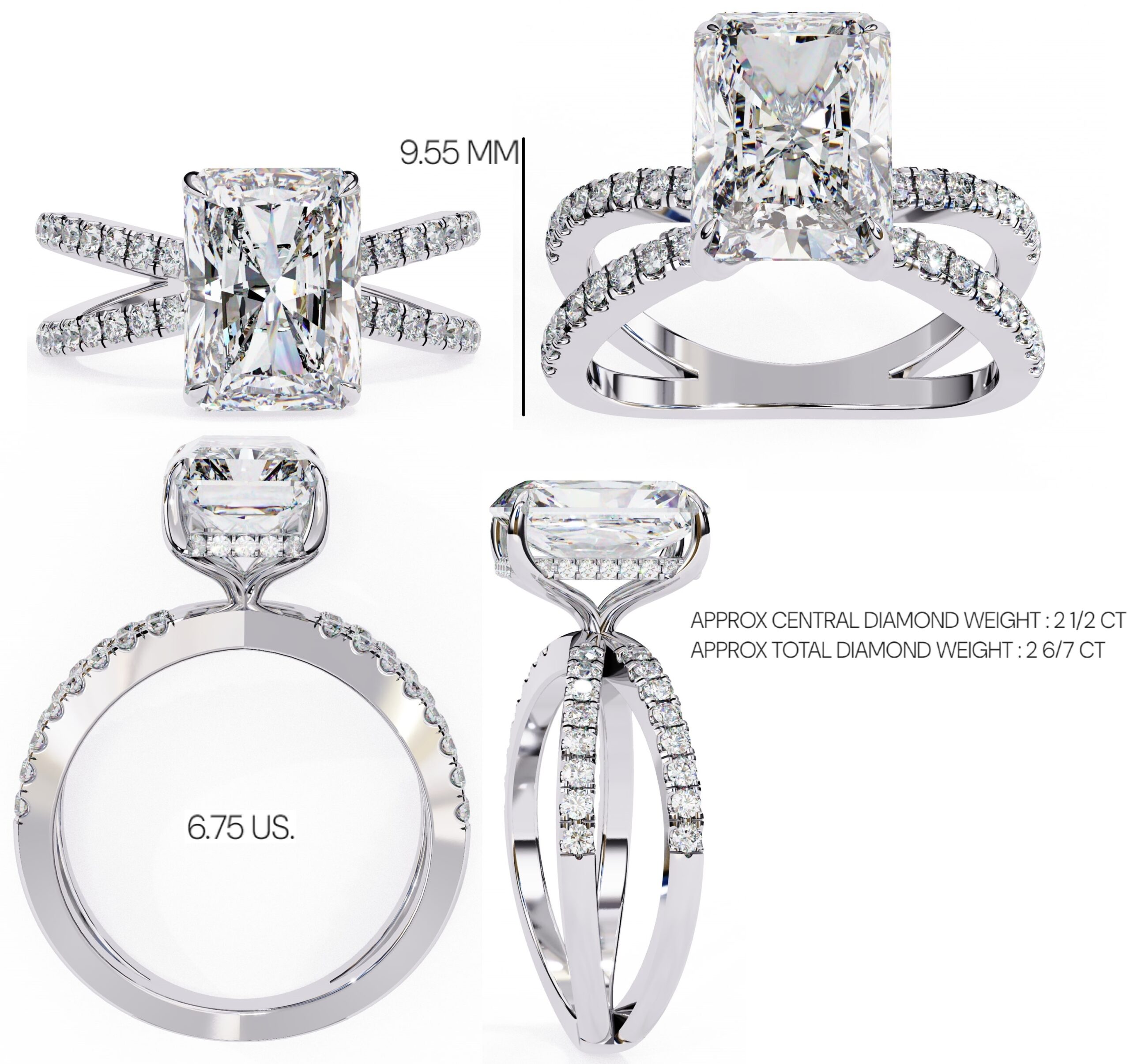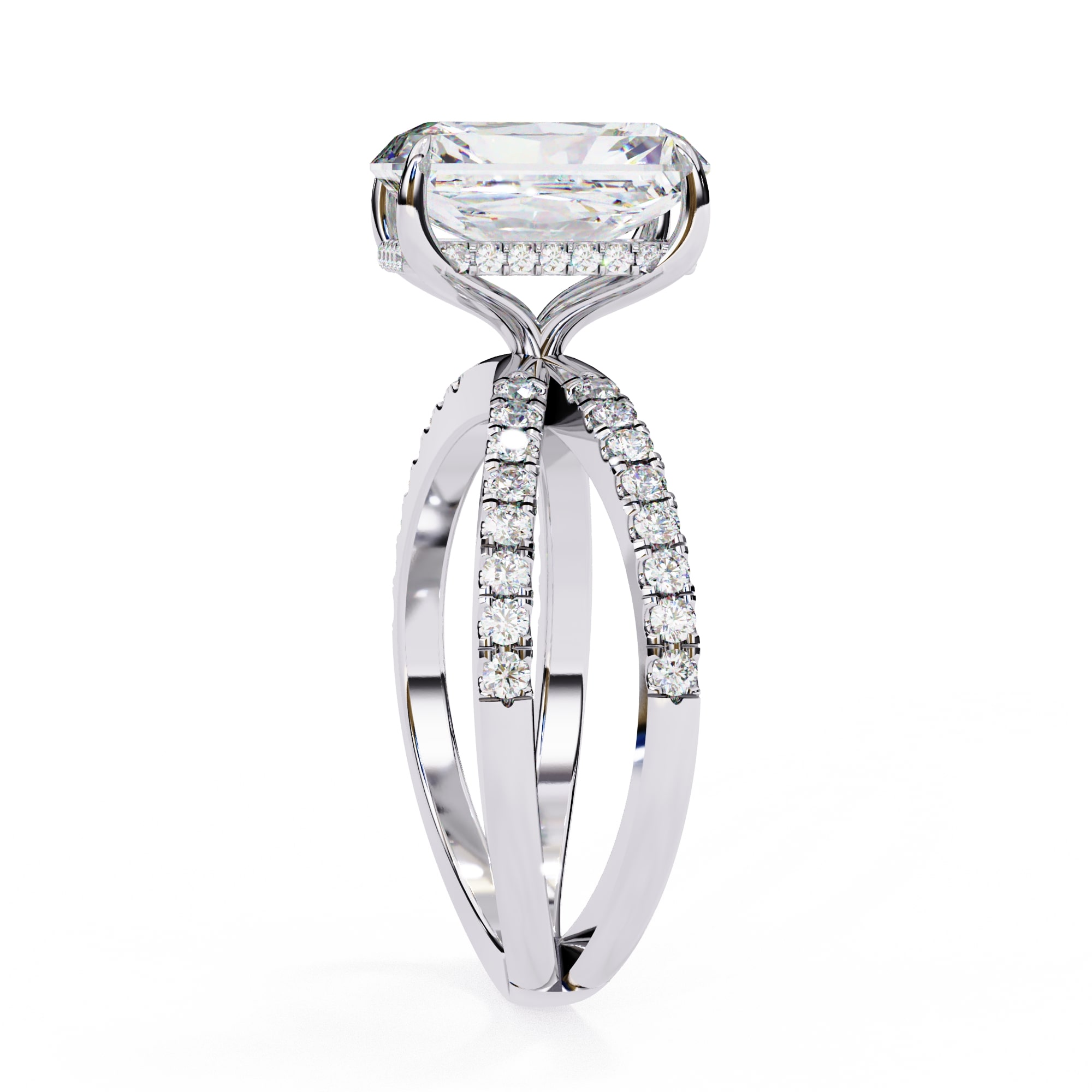 0.5 Carat Radiant Hidden Halo With Split Shank Engagement Ring