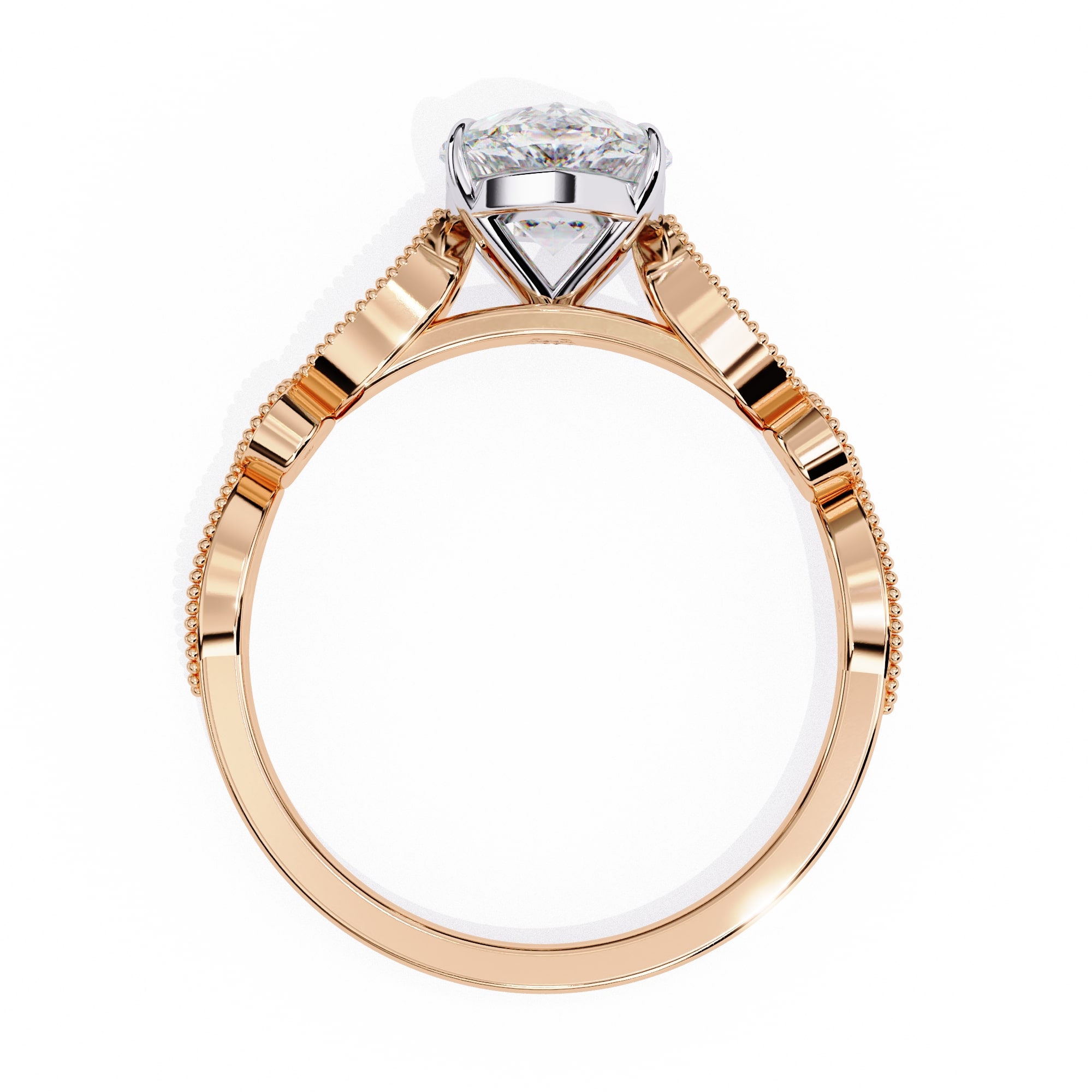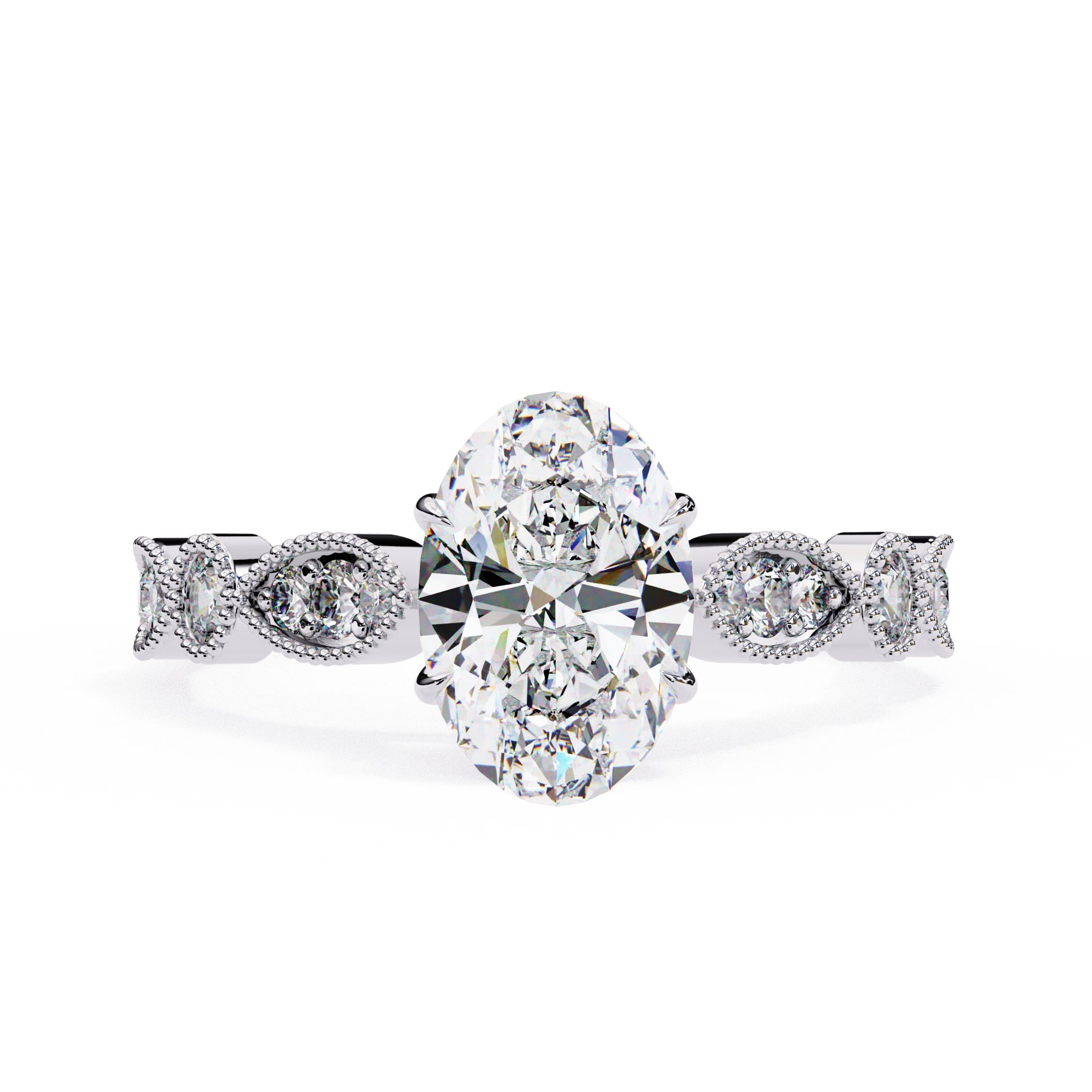 0.5 Carat Oval Cathedral with Milgrain Band Engagement Ring