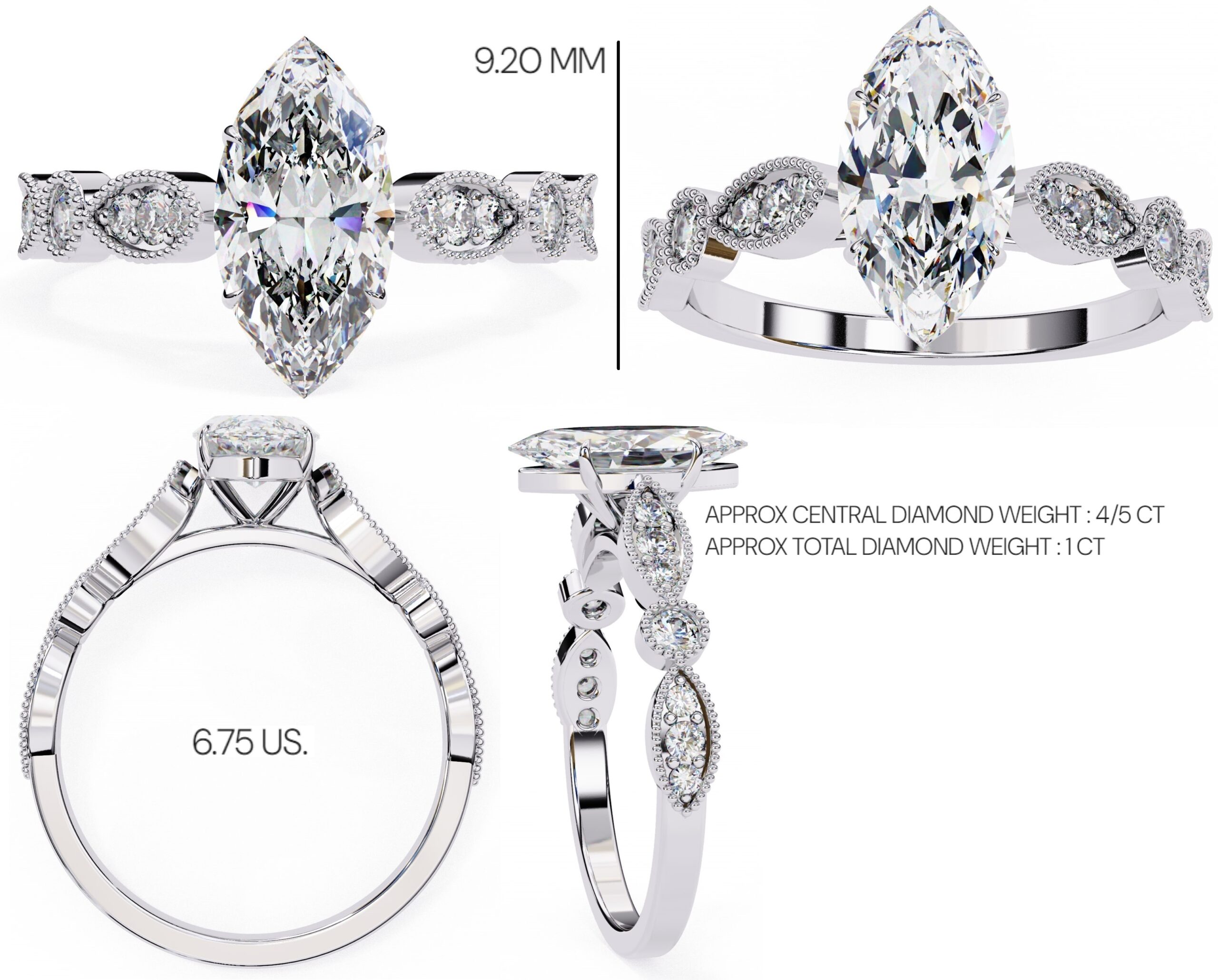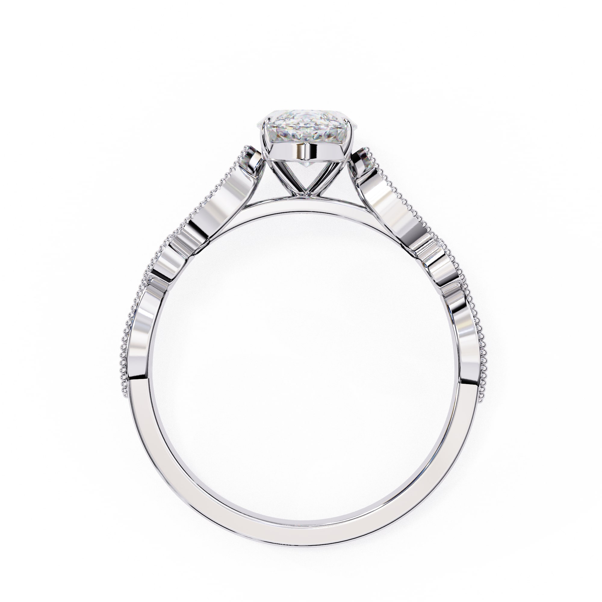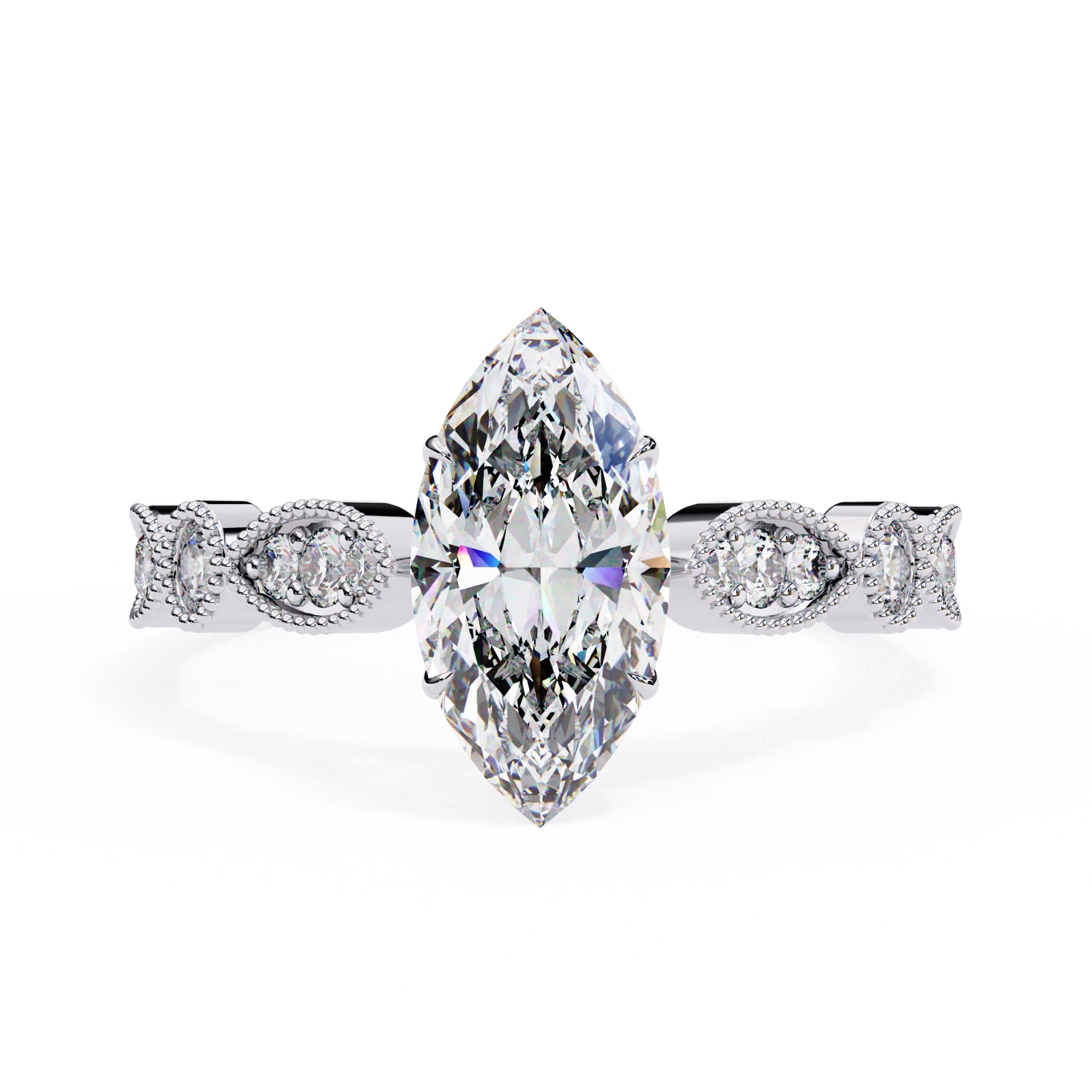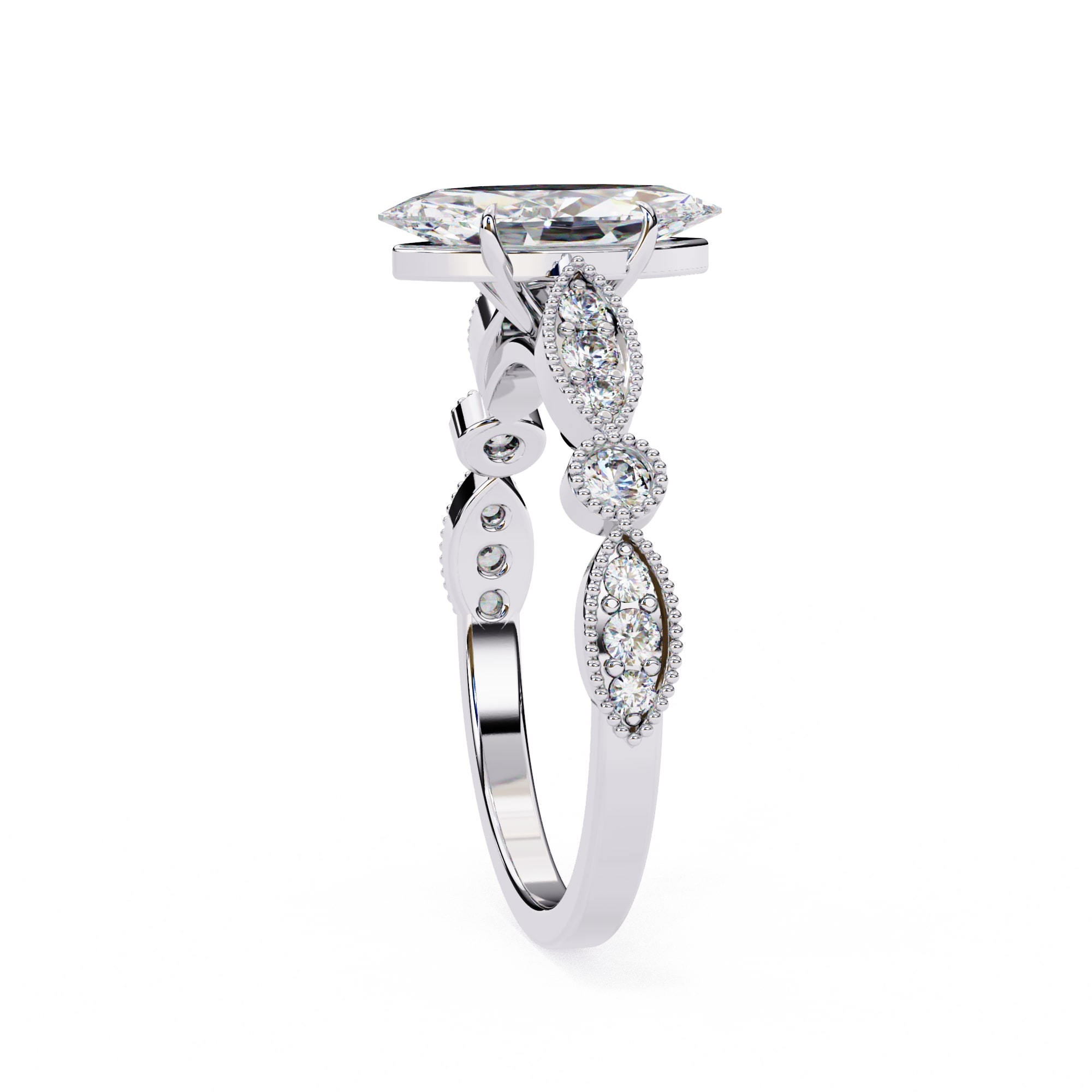 0.5 Carat Marquise Cathedral With Milgrain Band Engagement Ring