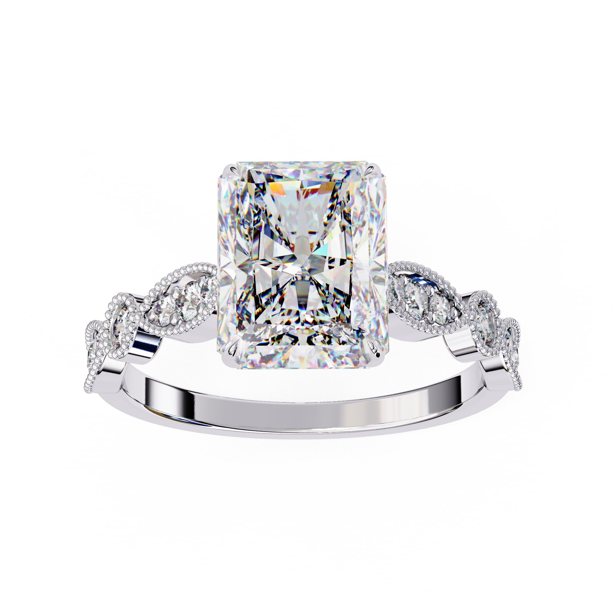 0.5 Carat Radiant Cathedral with Milgrain Band Engagement Ring