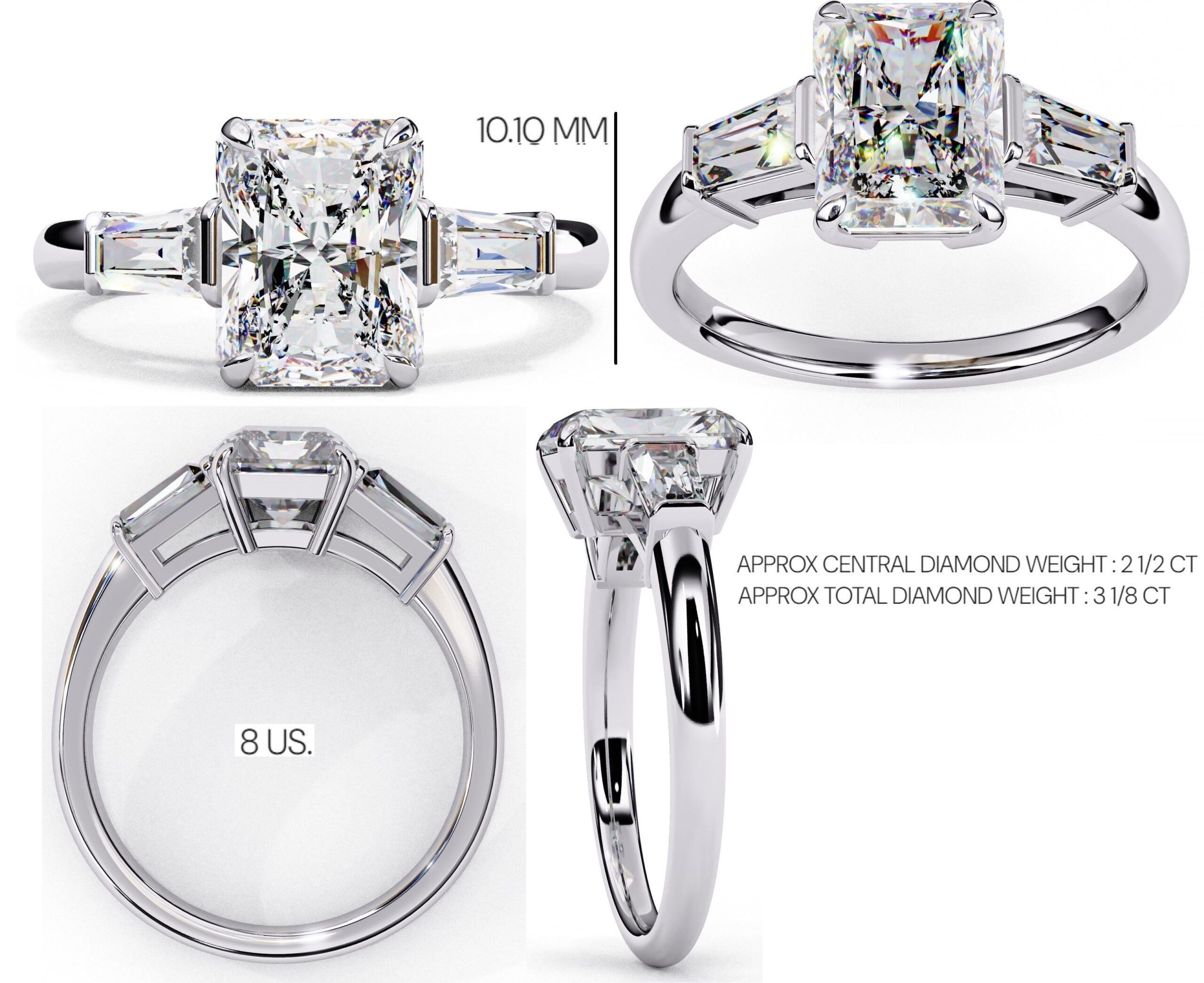 0.5 Carat Radiant Cut & Tapers Baguette Side Diamond Ring