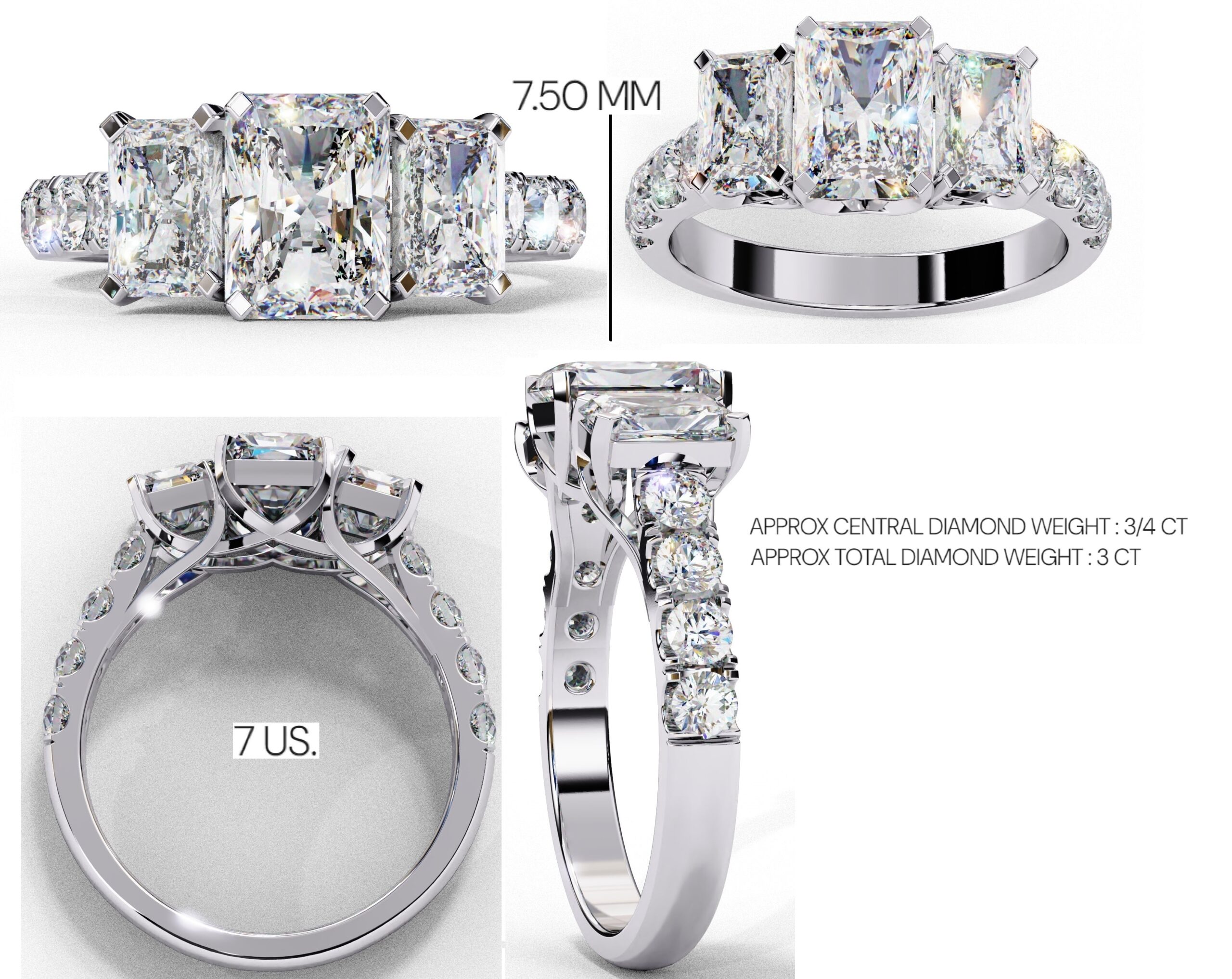 0.5 Carat Radiant Cut Trilogy Engagement Ring