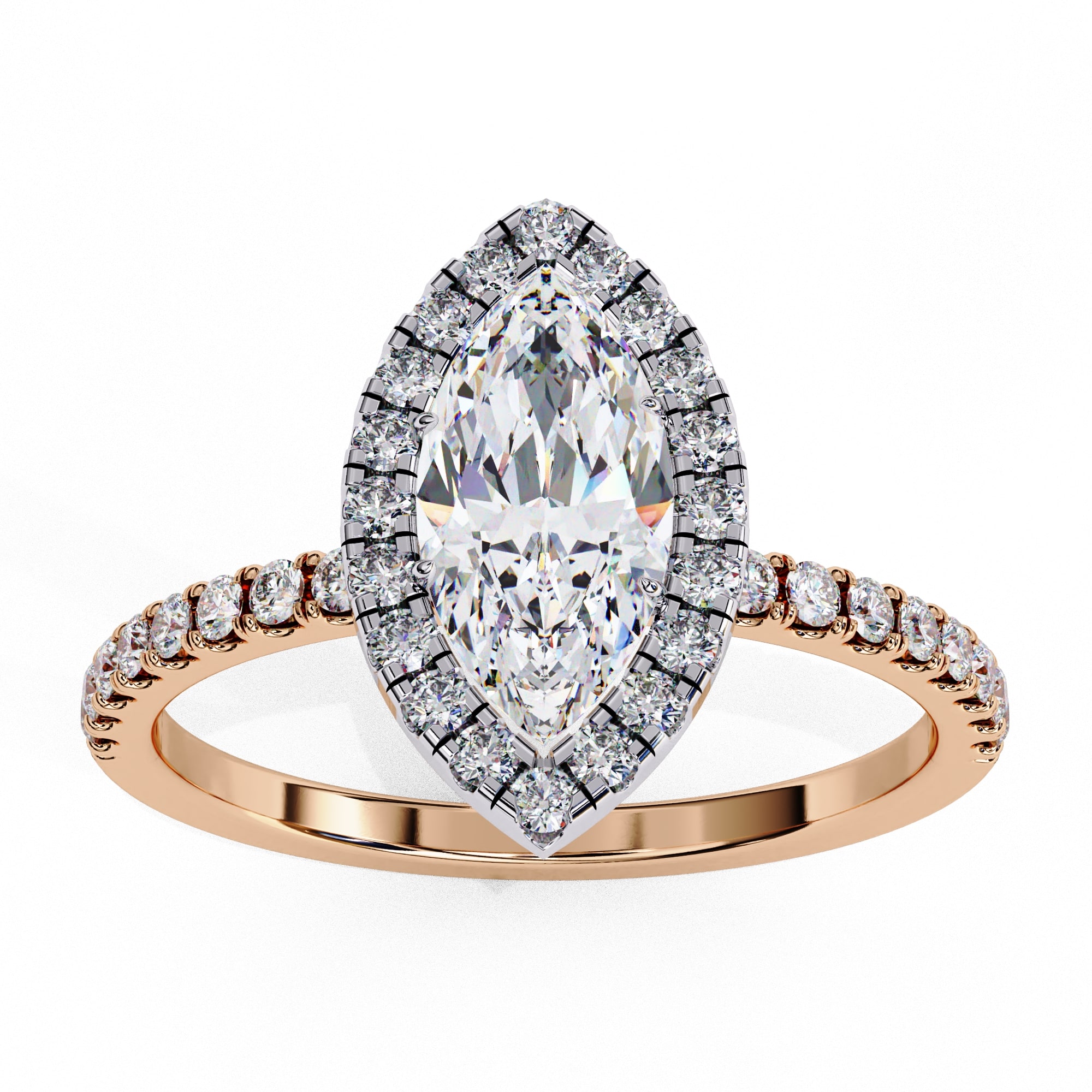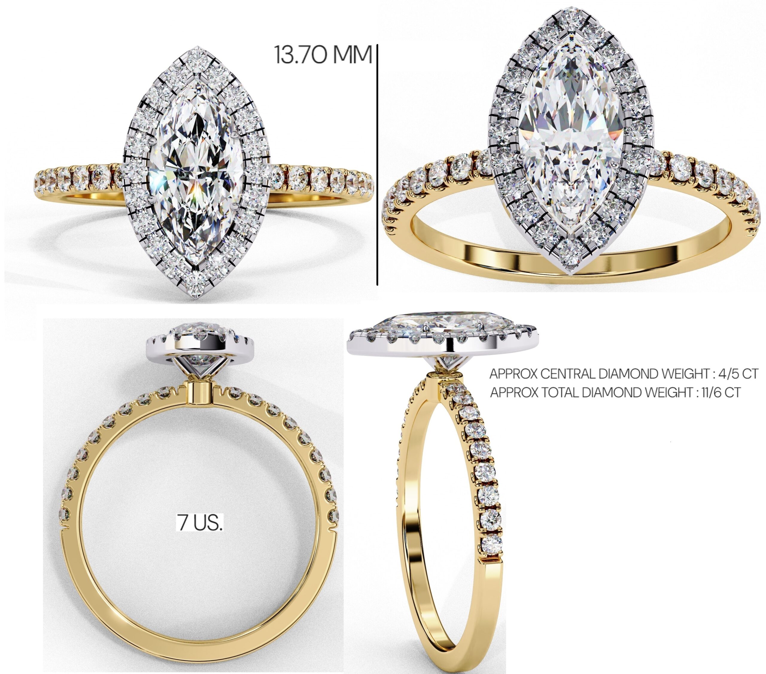 0.5 Carat Marquise Diamond Ring / Double Edge Halo & Pave Ring