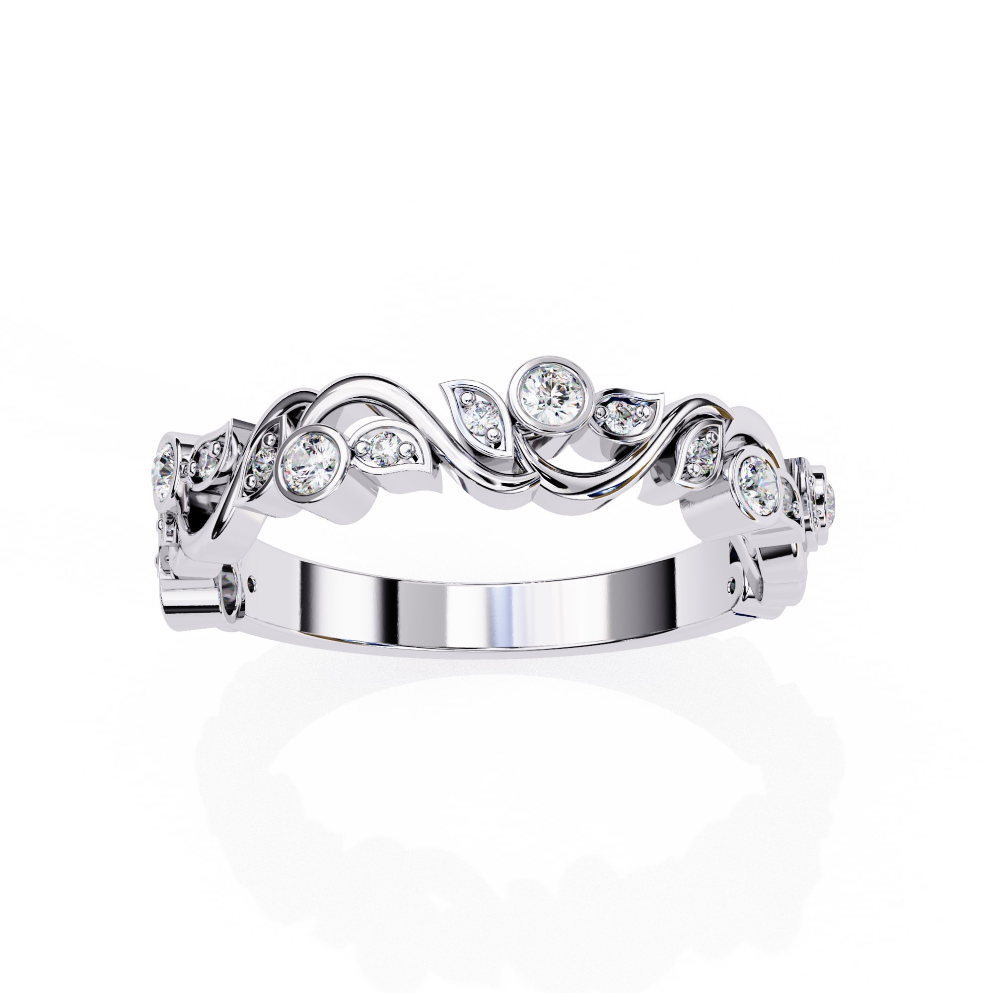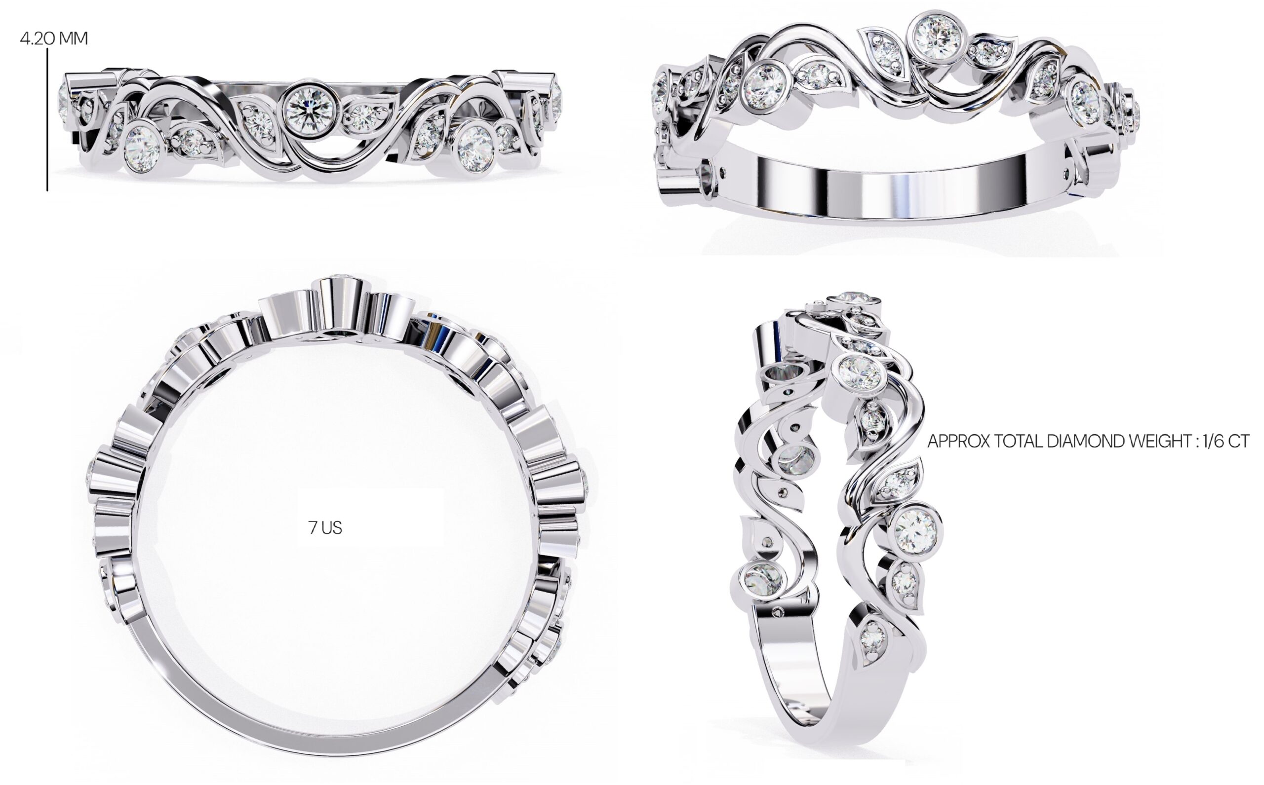 Round Floral Leaf Design Lab Grown Diamond Stackable Band