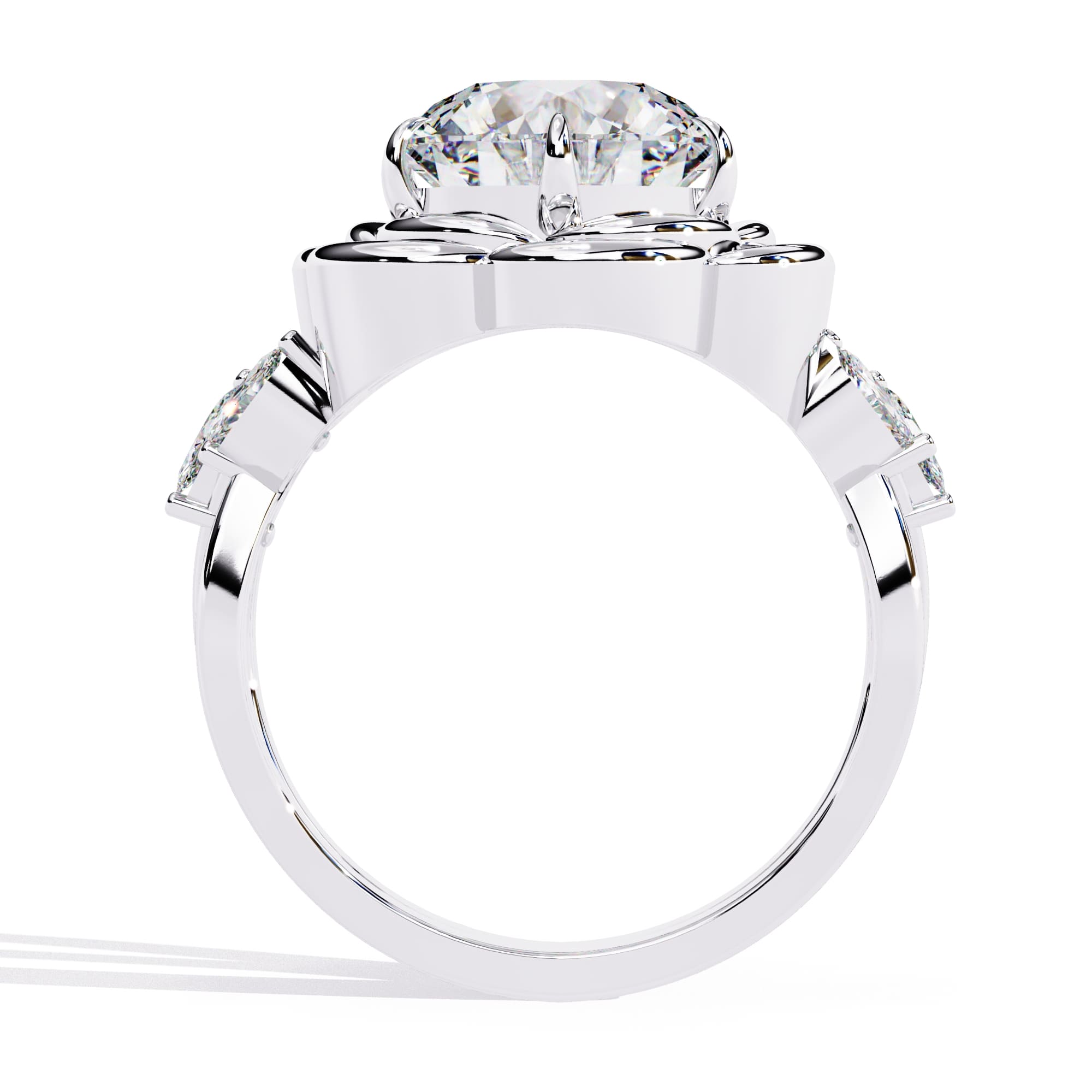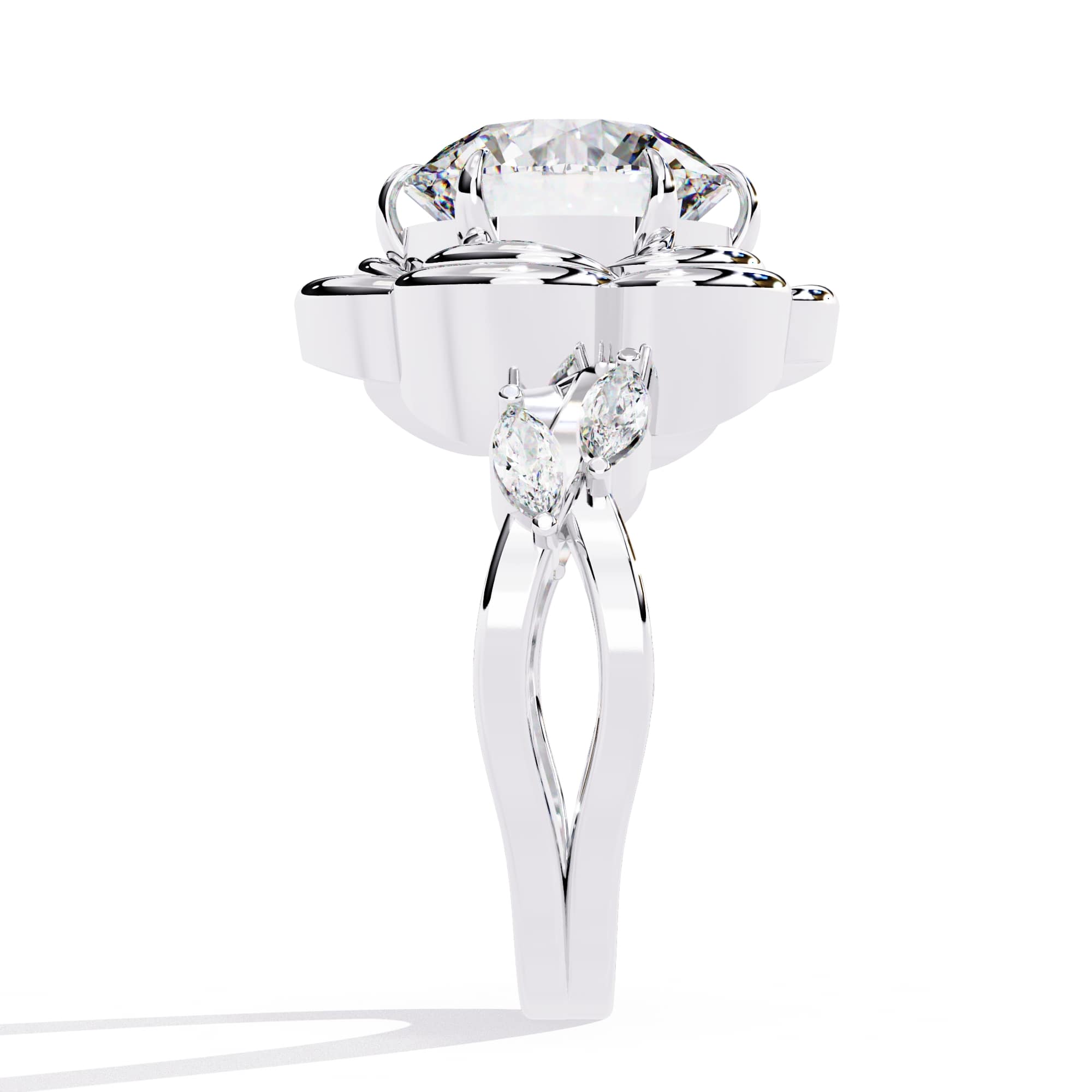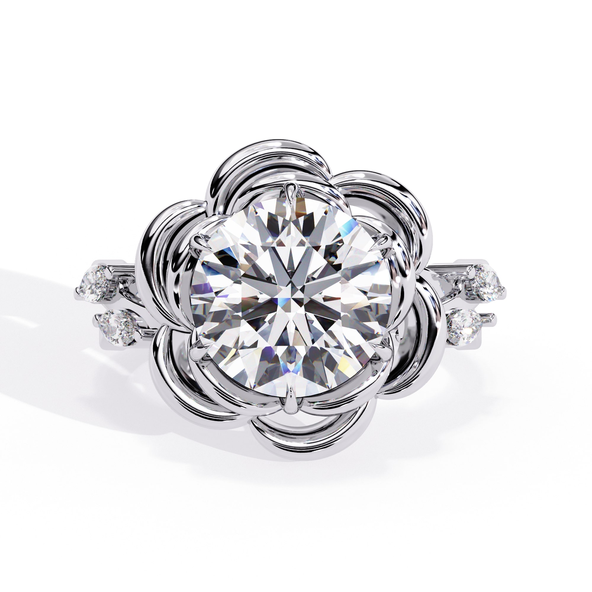 0.5 Carat Round Rose Petal with Accent Stone Engagement Ring