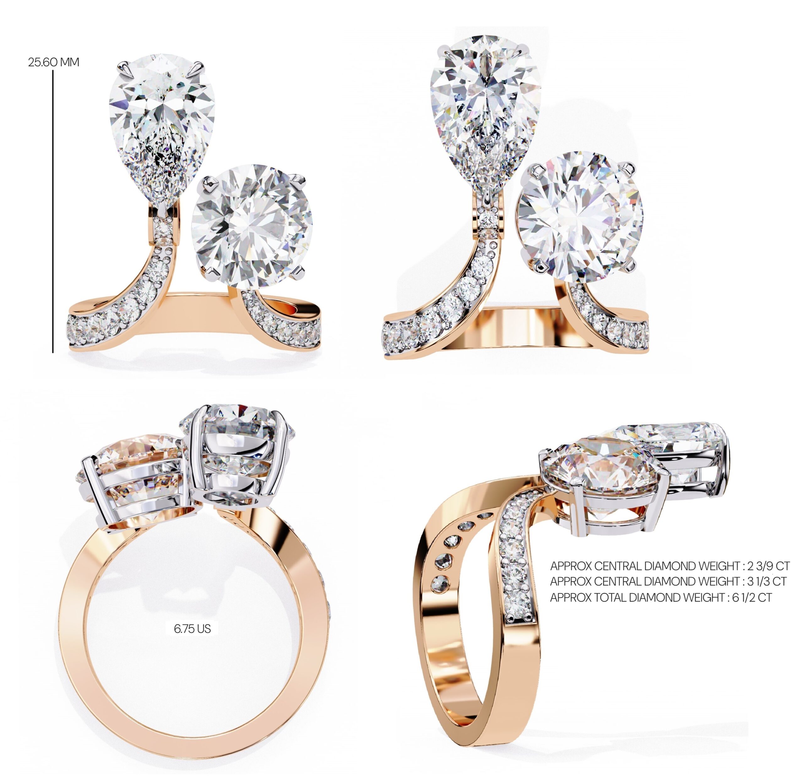 Regina – Toi et Moi Round and Pear Lab Grown Diamond Bypass Engagement Ring with Pave Band