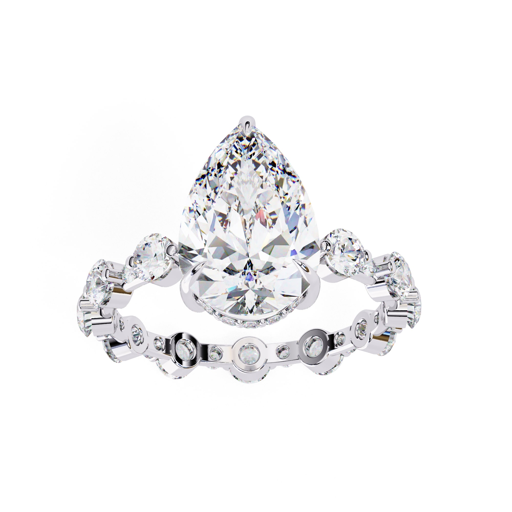 0.5 Carat Pear Cut Side Round Diamond Ring