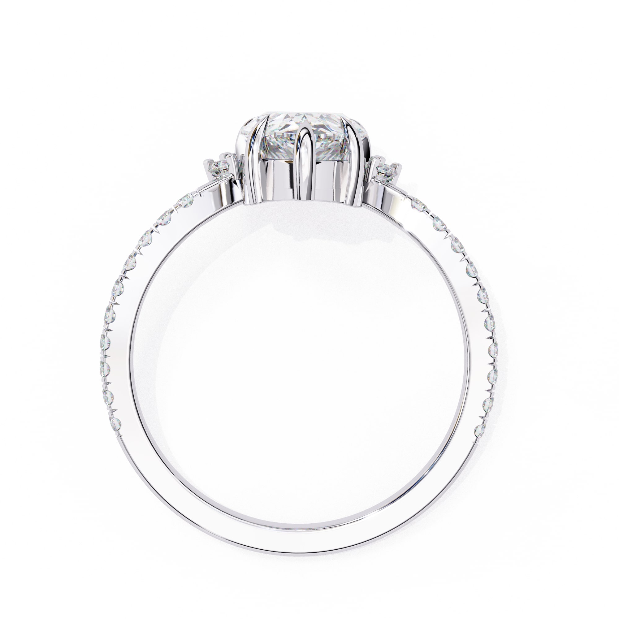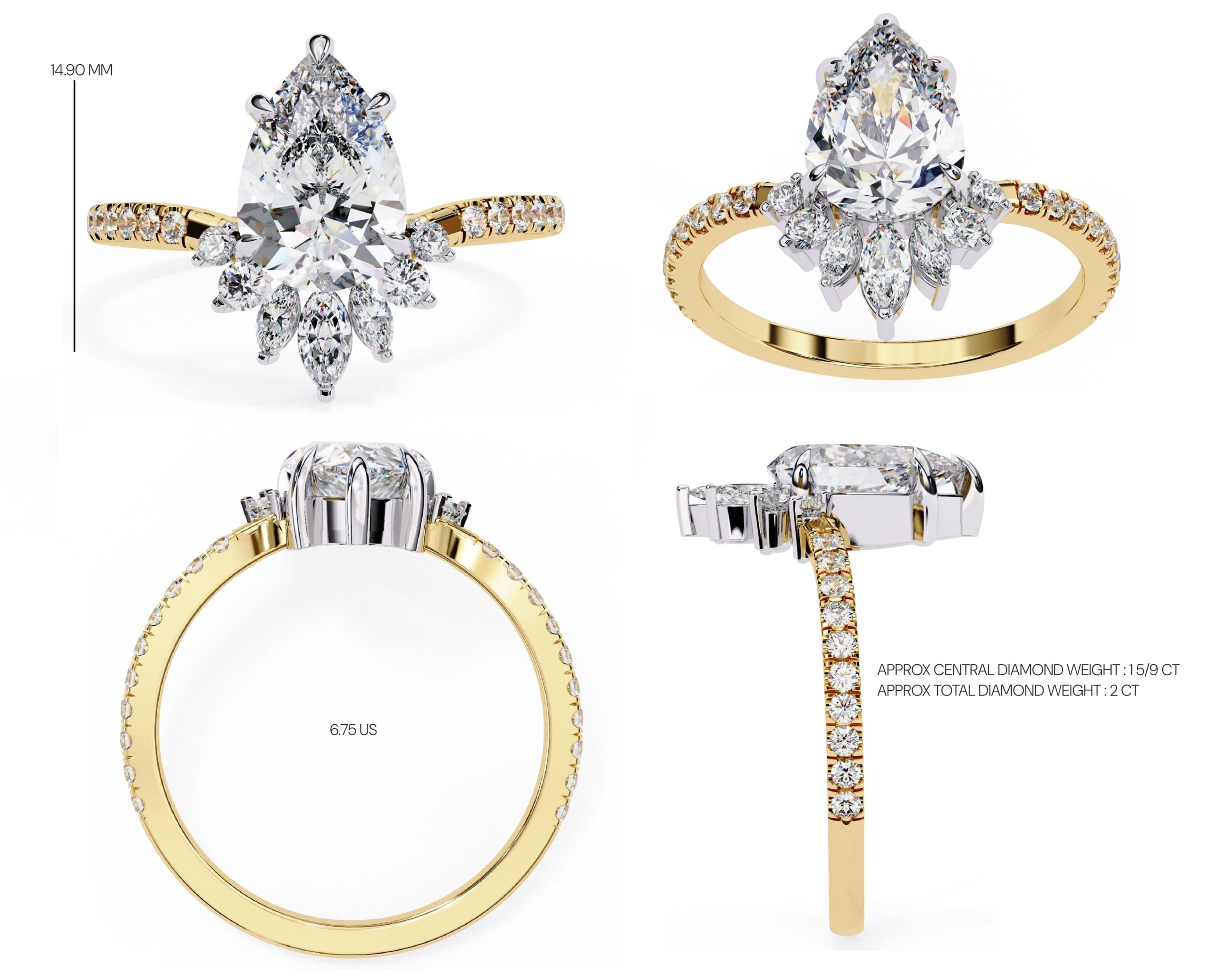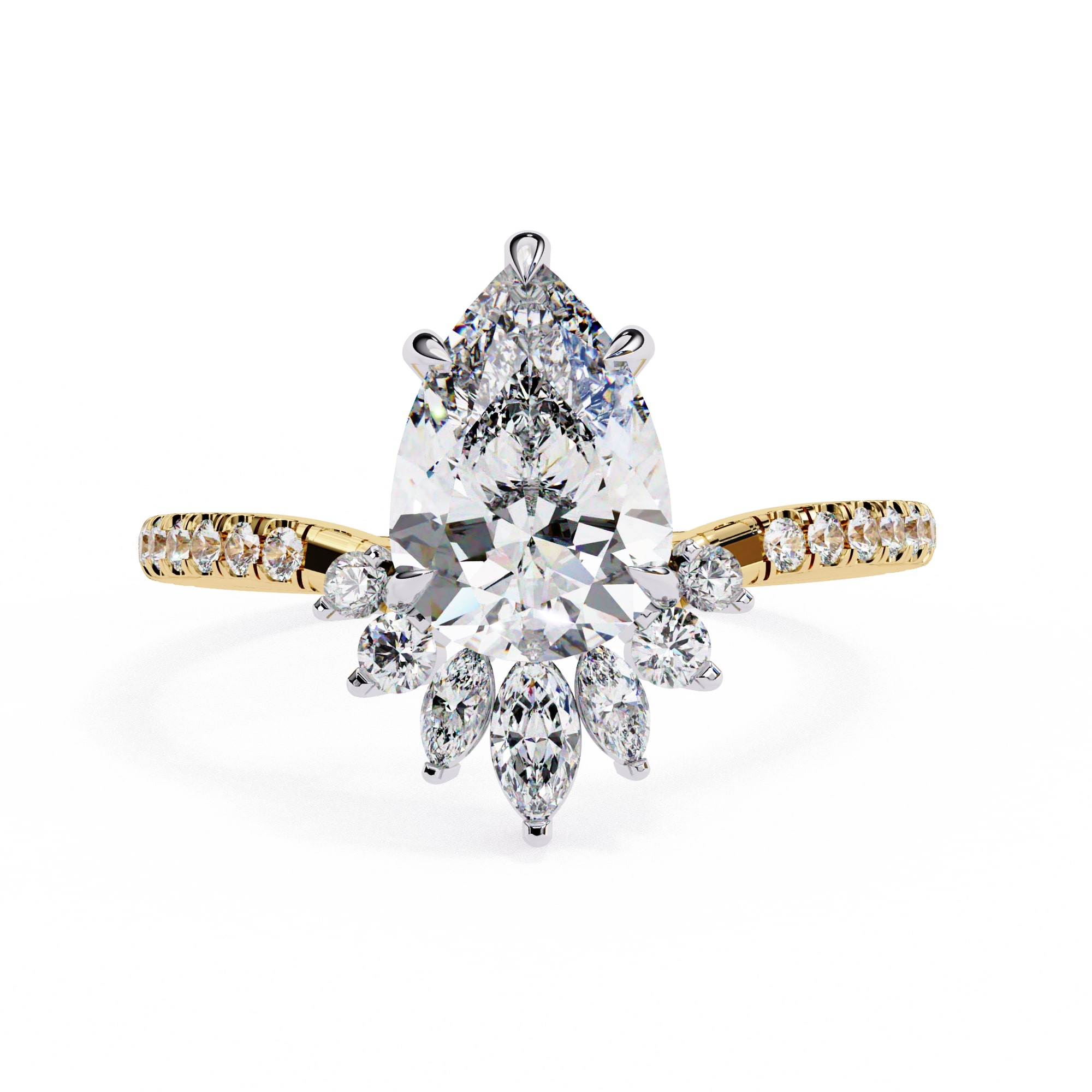 0.5 Carat Pear Vintage Style With Pave Engagement Ring / Marquise Side Stone Ring