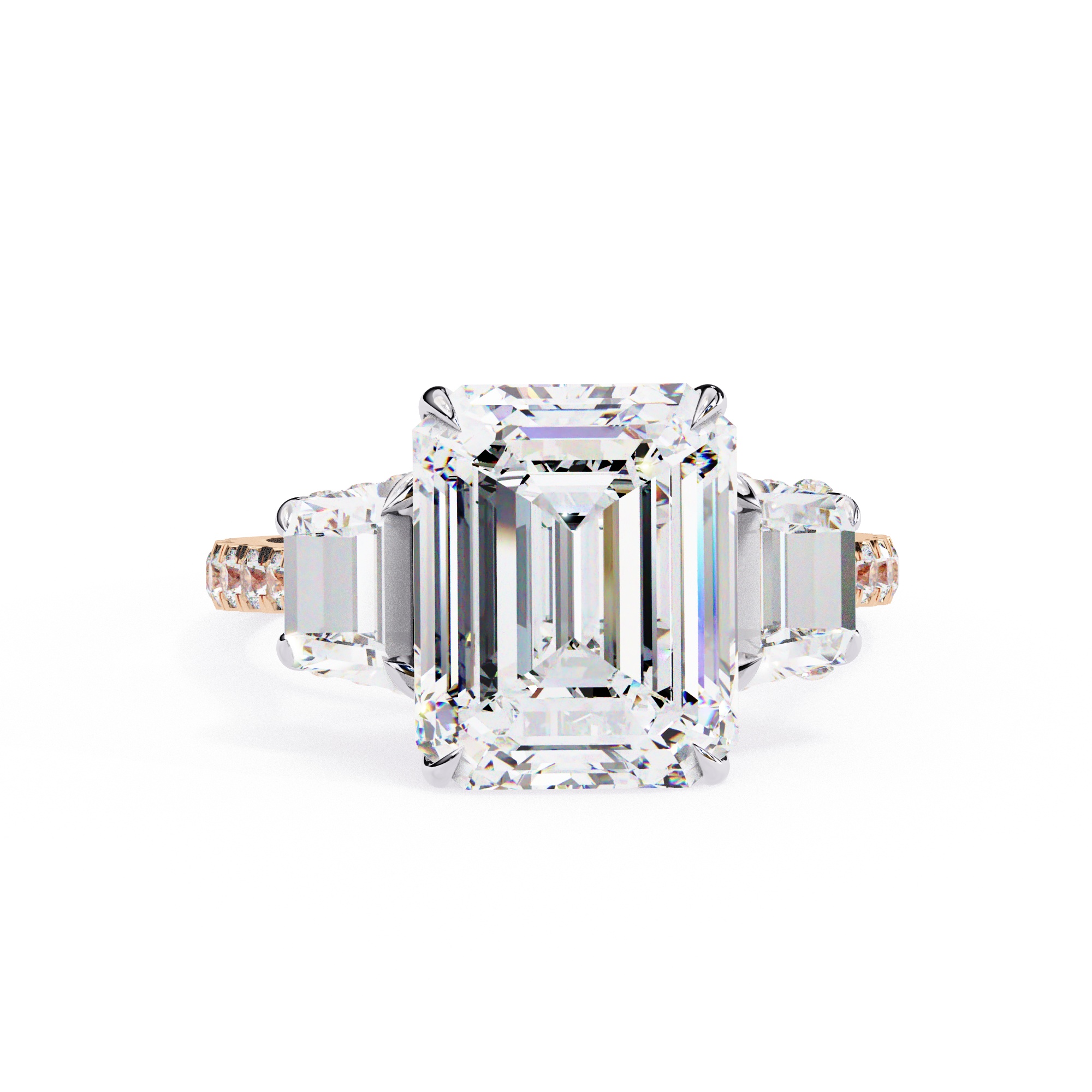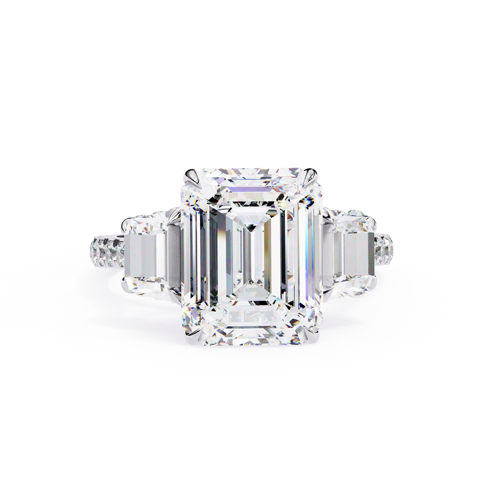 0.5 Carat Emerald & Side Baguette Diamond Ring / Three Stone Ring