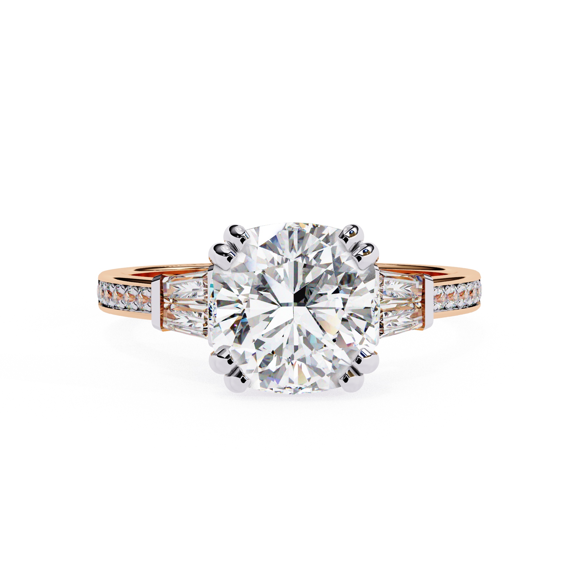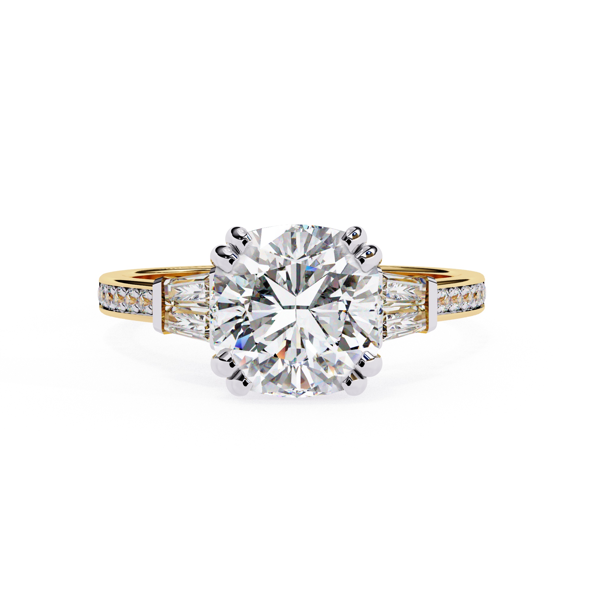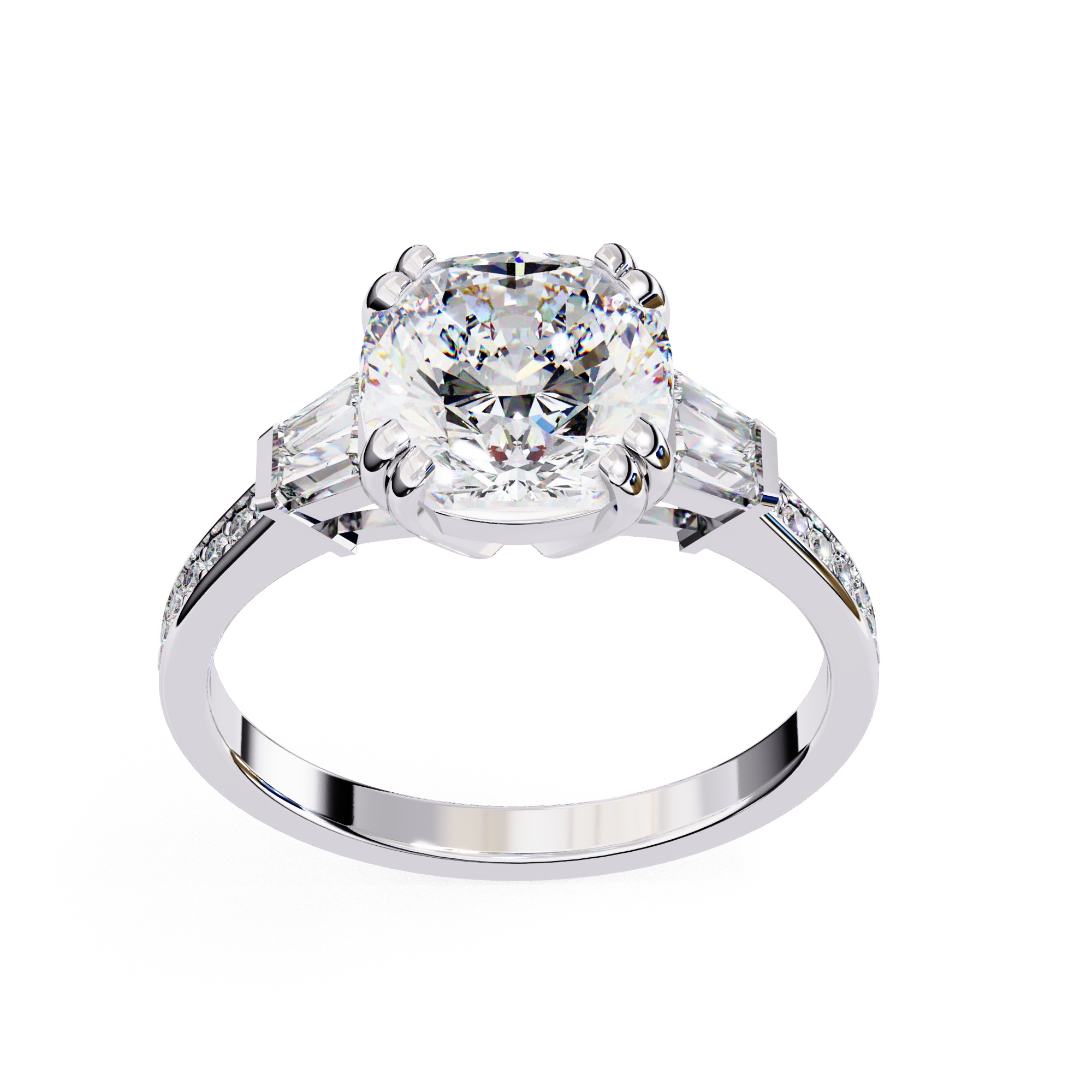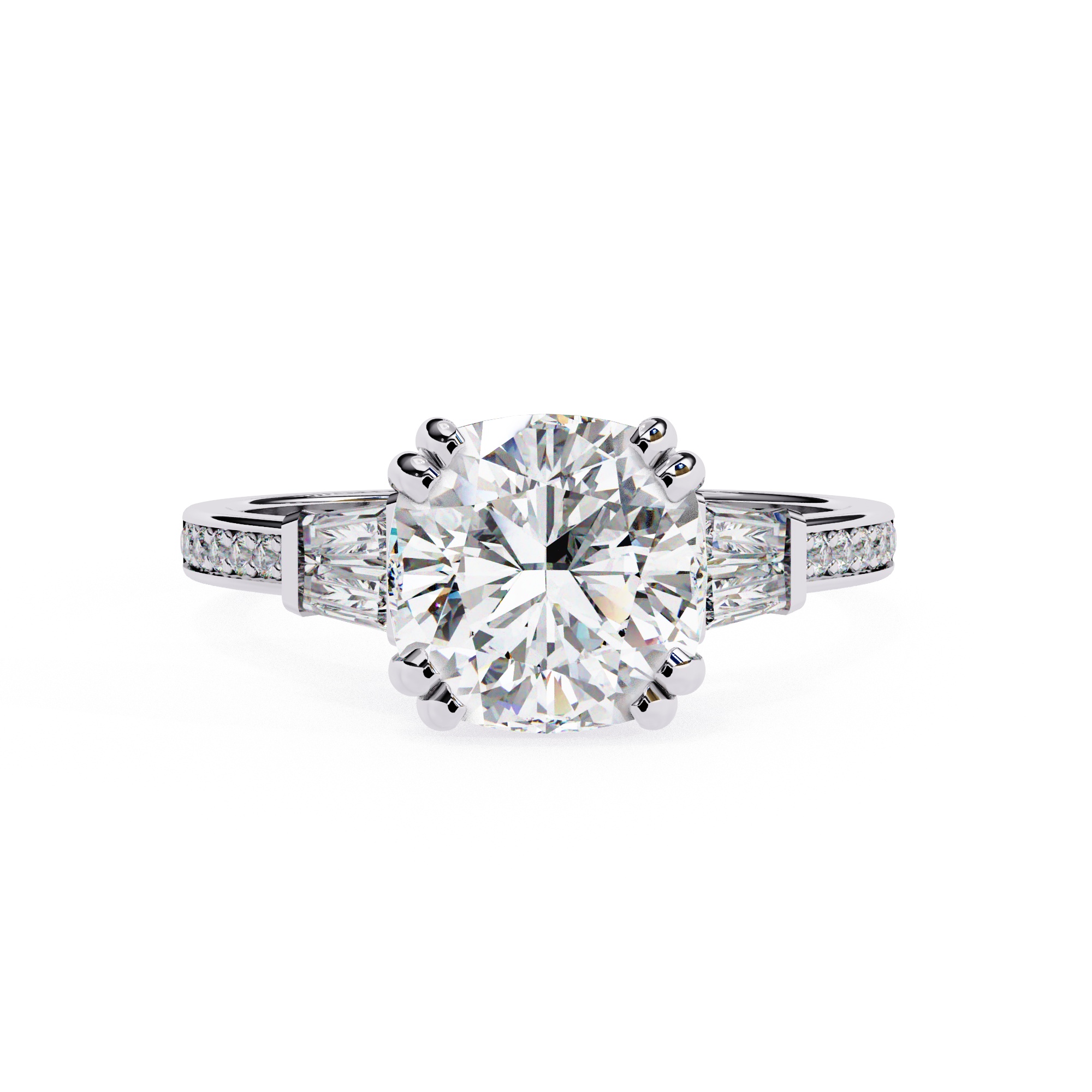 0.5 Carat Cushion Square Diamond & Diamond Baguette Engagement Ring