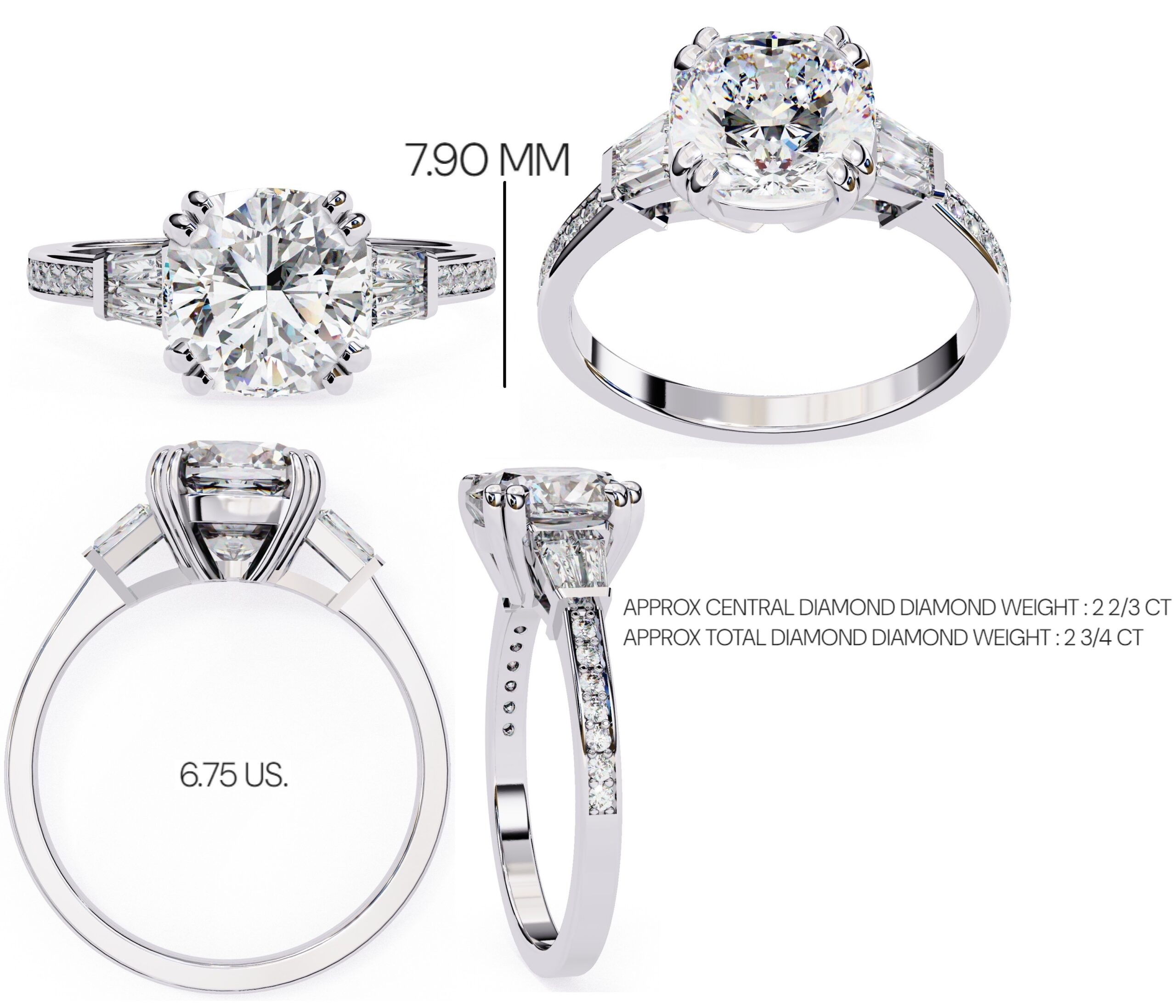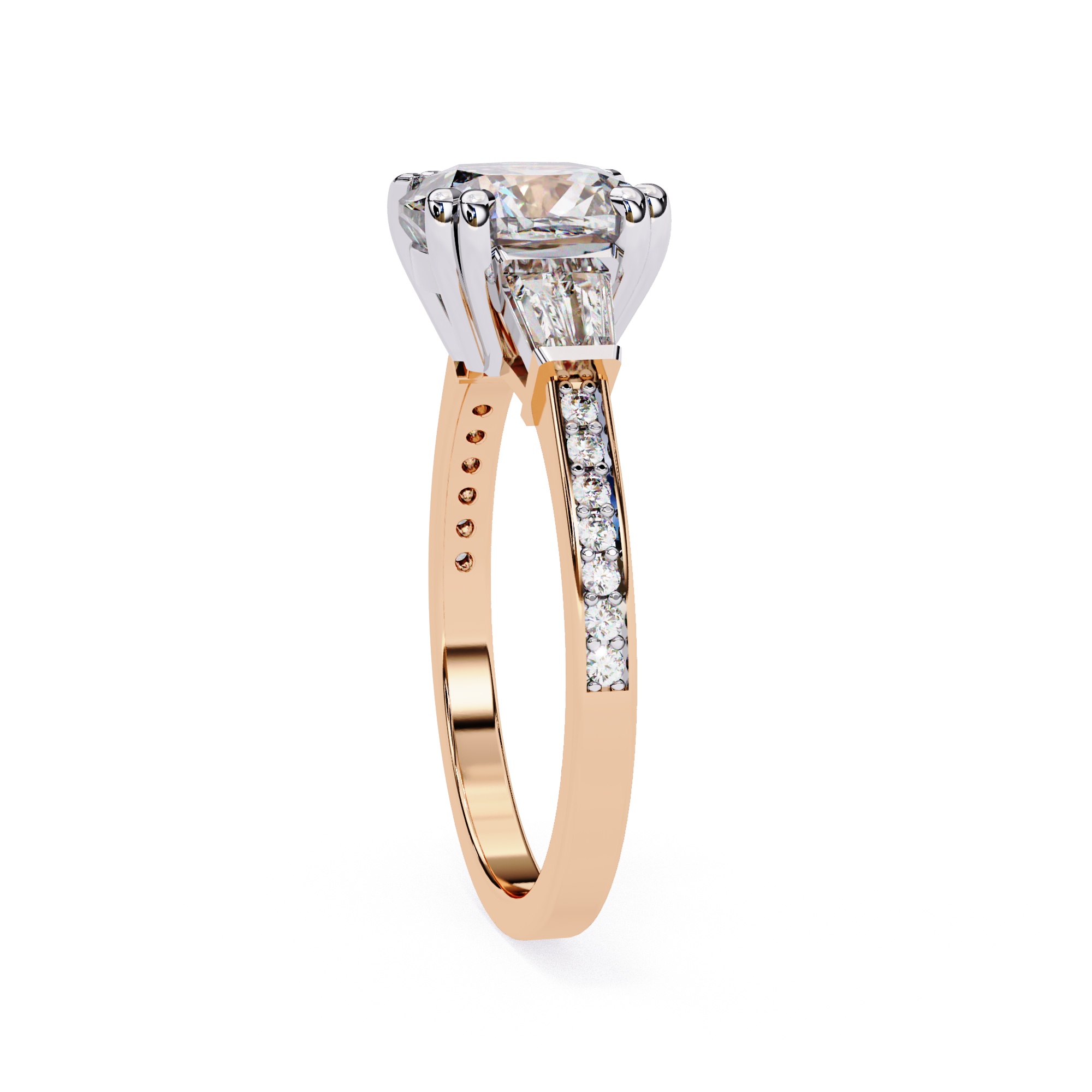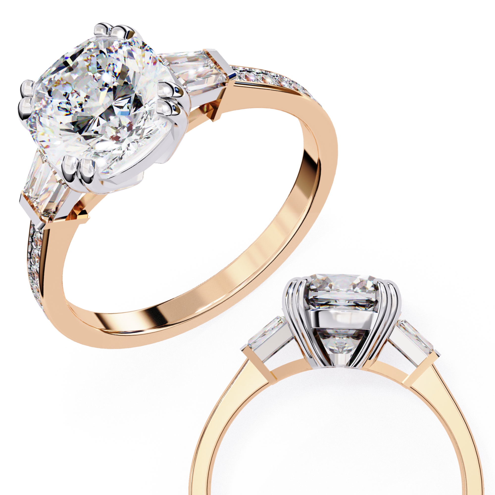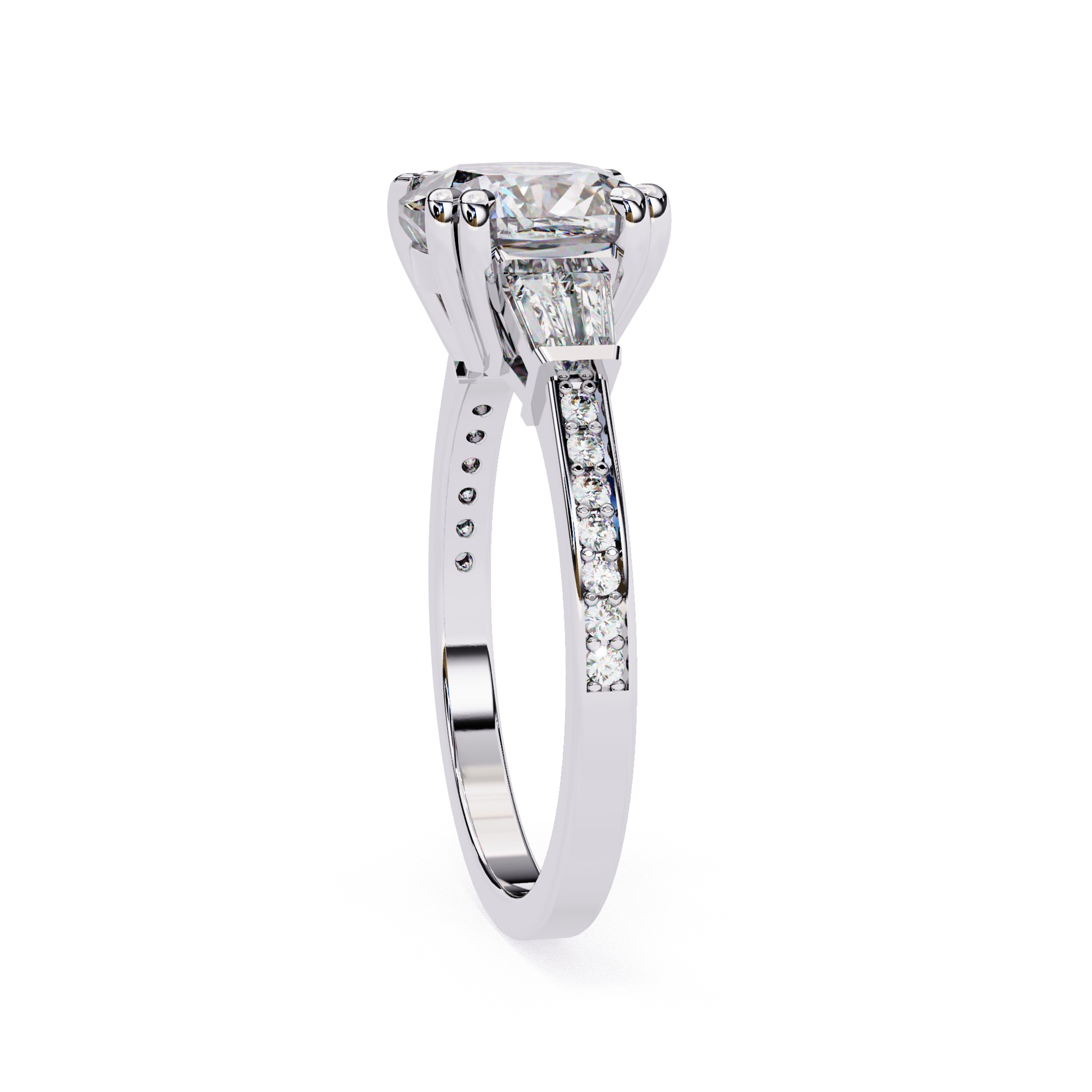 0.5 Carat Cushion Square Diamond & Diamond Baguette Engagement Ring